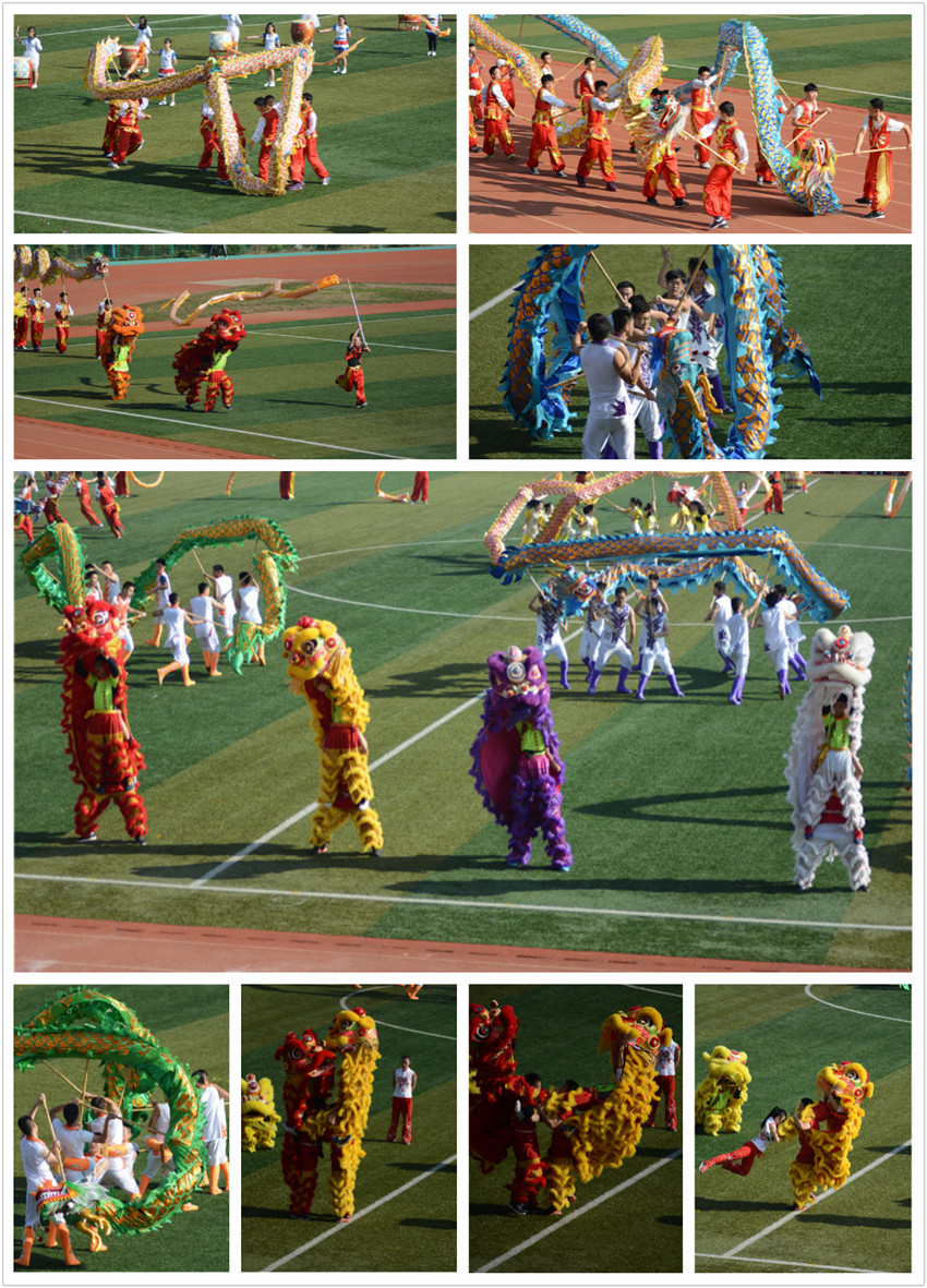开幕式上,永利官网同学精神抖擞、斗志昂扬,迈着整齐的步伐走过主席台,富有特色的龙狮队伍在朝阳下熠熠生辉,成为开幕式里一道靓丽的风景线。在表演环节,大学生龙狮团带来了舞龙舞狮表演《盛世华章 太极舞龙》,升龙腾云,翻身振翼;九龙齐舞,变幻莫测。他们精彩演绎了平盘波浪、飞龙在天等一系列高难度动作,赢得了现场师生的阵阵掌声。
