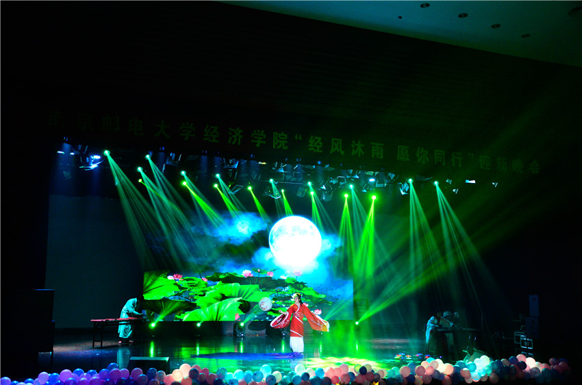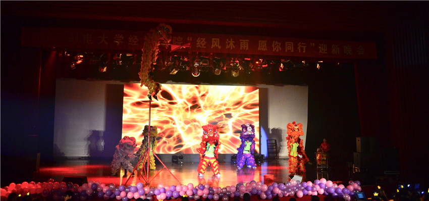晚会在2016级经济统计学六班选送的暖场舞蹈串烧中拉开了序幕。整场晚会共分为两个篇章。上篇“吟醉民族情”中,大学生舞龙表演《龙腾华夏》惊艳亮相,让我们充分感受到了中华传统文化的浓厚底蕴;汉服舞《春江花月夜》舞姿古朴典雅,将古香古色的汉族文化的美展现得淋漓尽致;歌曲串烧《远方的爱与歌》和《Be tough guy》深情演绎众多经典曲目,将现场观众带入一个美好的世界;南京财经大学相声社选送的《量子力学与广义相对论在相声表演与制作中的指导及应用》对白诙谐风趣,场内笑声阵阵;民舞串烧《舞韵山水情》舞步婀娜多姿,各具特色的民族风情感染全场观众;小品《奉承》笑点不断,令人捧腹;艺术体操《nothing on you》以其轻快活泼的节奏,彰显青春风采,让人领略到了不一样的精彩;大一大二辅导员和大一新生代表选送的情景诗朗诵《以青春的名义宣誓》青春洋溢,斗志昂扬,向同学们传递了永不言弃、相信自己的正能量;舞狮表演《雄师争霸,步步登高》,惟妙惟肖,活灵活现,狮子步步攀升寓意祝愿经院学子百尺竿头,更进一步!
