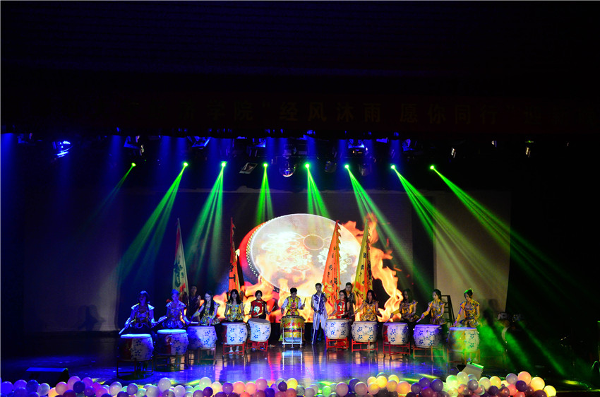 下篇“ 狂欢不眠夜”中,由Dominate电声乐队带来活力四射、激情洋溢的开场曲,给同学们带来了一场音乐盛宴;858街舞社和2016级经统五班选送的《858 popping team+Freaks》,动感十足,活力四射,与音乐完美融合;小品《艺考那些事儿》妙趣横生,将晚会又一次带入高潮;由拉丁舞协会选送的拉丁舞表演《merry》,每一名舞者都展现出她们对拉丁舞的热情,气韵灵动的舞姿展现了独特优雅的个人魅力;2016级新生选送的吉他弹唱《high-fy》,经典老歌唱不停,超强的感染力嗨翻全场;学生会节目《没有票抽不中奖的中干们》引爆全场气氛,对每一位在幕后辛苦筹备晚会的学生会中干表示感谢;晚会在龙狮团精心编排的水鼓表演《水鼓中国龙》中落下帷幕。