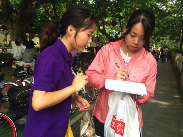 2017年7月7日早8:00,社会实践小组成员在3044am永利官网仙林南门集合,随后集体乘坐地铁前往南京市玄武区开展第二日的调查实践。玄武区实践的调查问卷主要在江宁织造博物馆、南京市图书馆、总统府及新街口等周边地区进行发放。在此期间共发放问卷150份,回收有效问卷145份,许多热心的参观游客参与到我们的调查中来并与我们进行了相关的沟通交流,且许多热心的受访者为我们提出了符合共享单车长久发展的优质建议。