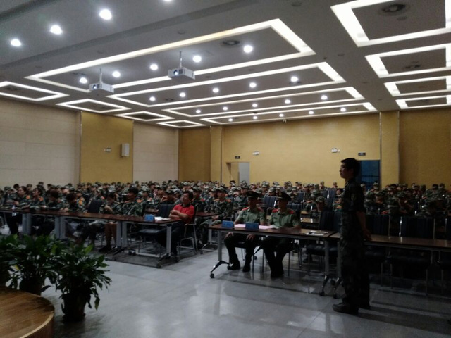 2017年9月10日18:30,永利3044noc2017级新生军训动员会在学科楼报告厅举行。出席大会的有学院党委董军副书记,新生辅导员王欢老师,武警江苏总队第一支队的阮明刚教官和汪鑫教官,班级助理及全体新生。