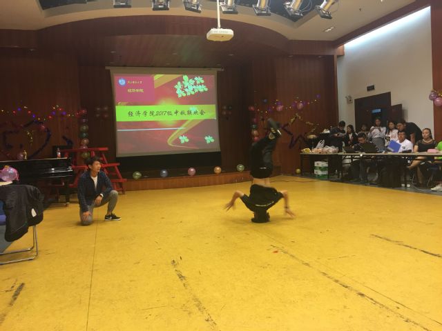 联欢会的节目主要来自新生,一首《安静》仿佛让时间静止、感心动耳,《问》《斑马斑马》等一首首脍炙人口的歌曲在同学们的演绎中更具深意,街舞表演《街街的街舞》点燃了全场的热情,带来了无限的震撼。除此之外,还有同学们精心准备的小提琴钢琴合奏、民族舞蹈、诗歌朗诵、合唱表演等。新生们多才多艺,学姐们也毫不示弱,大二的王一宁、杨韵两位学姐也为大家带来了悦耳动听的歌曲串烧。晚会的压轴节目是由大二的学姐们带来的女龙表演,整齐划一、动作流畅,引起了新生们的阵阵掌声。