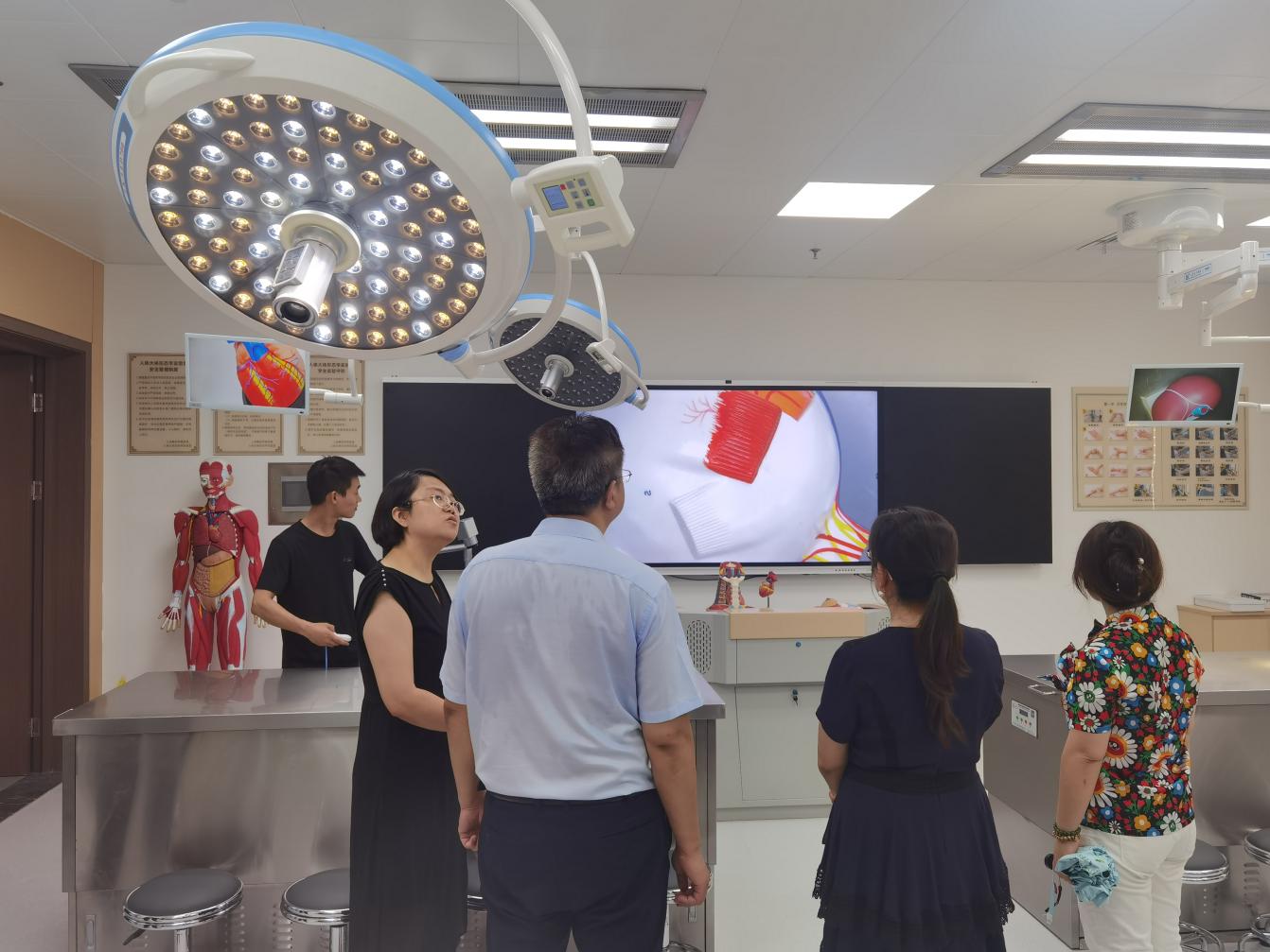 吴斌副院长一行先后检查了智慧教室、监控室、中药实验室、解剖学教室建设情况,亲身体验了学院的学习和工作环境,并对学院教室规划建设情况、新学期预计使用情况、学生容纳数量及日常管理等问题进行深入了解。