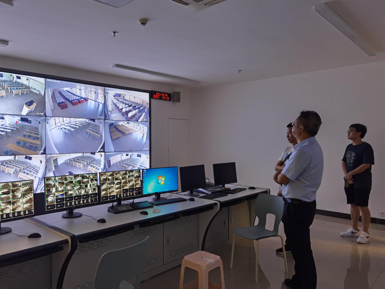 9月开学在即,2023年8月8日上午,吴斌副院长率领教务处、后勤保卫处等相关部门巡查了诸侯快讯教学环境。