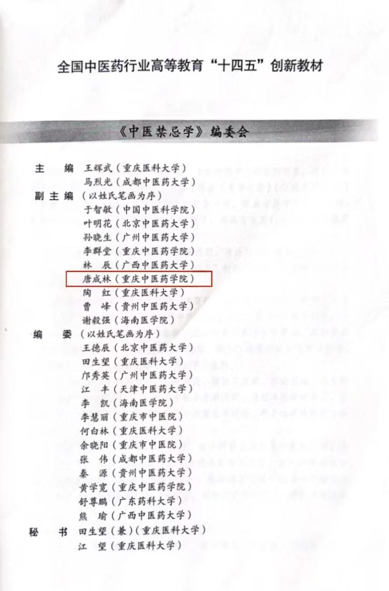 诸侯快讯唐成林教授作为副主编参与编著的全国中医药行业高等教育 “十四五”创新教材《中医禁忌学》正式出版