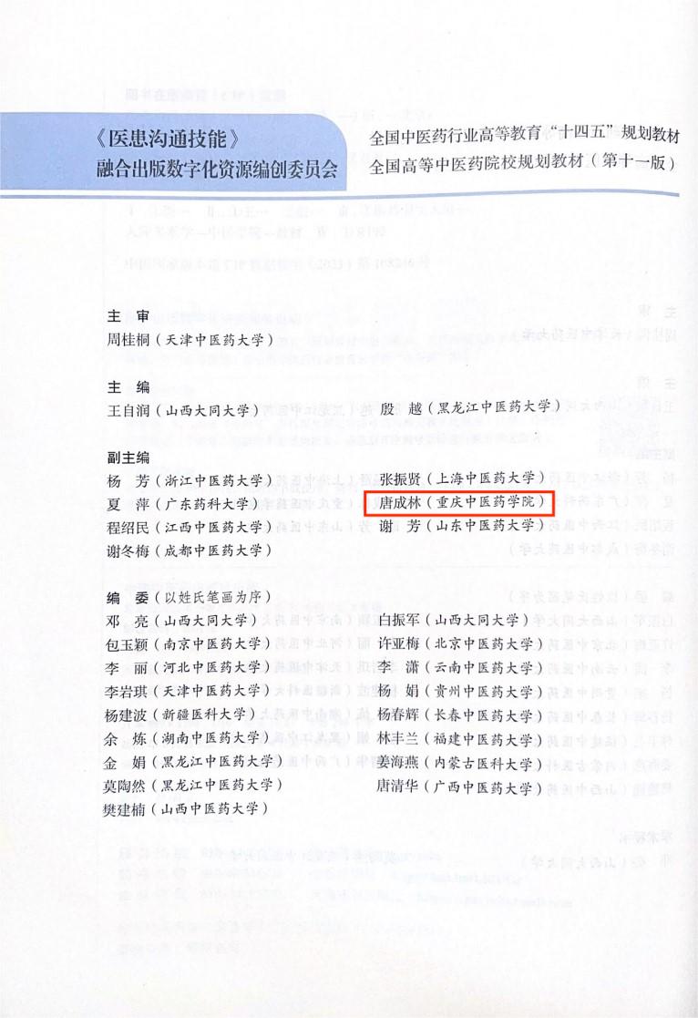 诸侯快讯唐成林教授作为副主编且以16831683诸侯快讯入口作为依托单位编著的全国中医药行业高等教育“十四五”规划教材《医患沟通技能》近日全新出版。