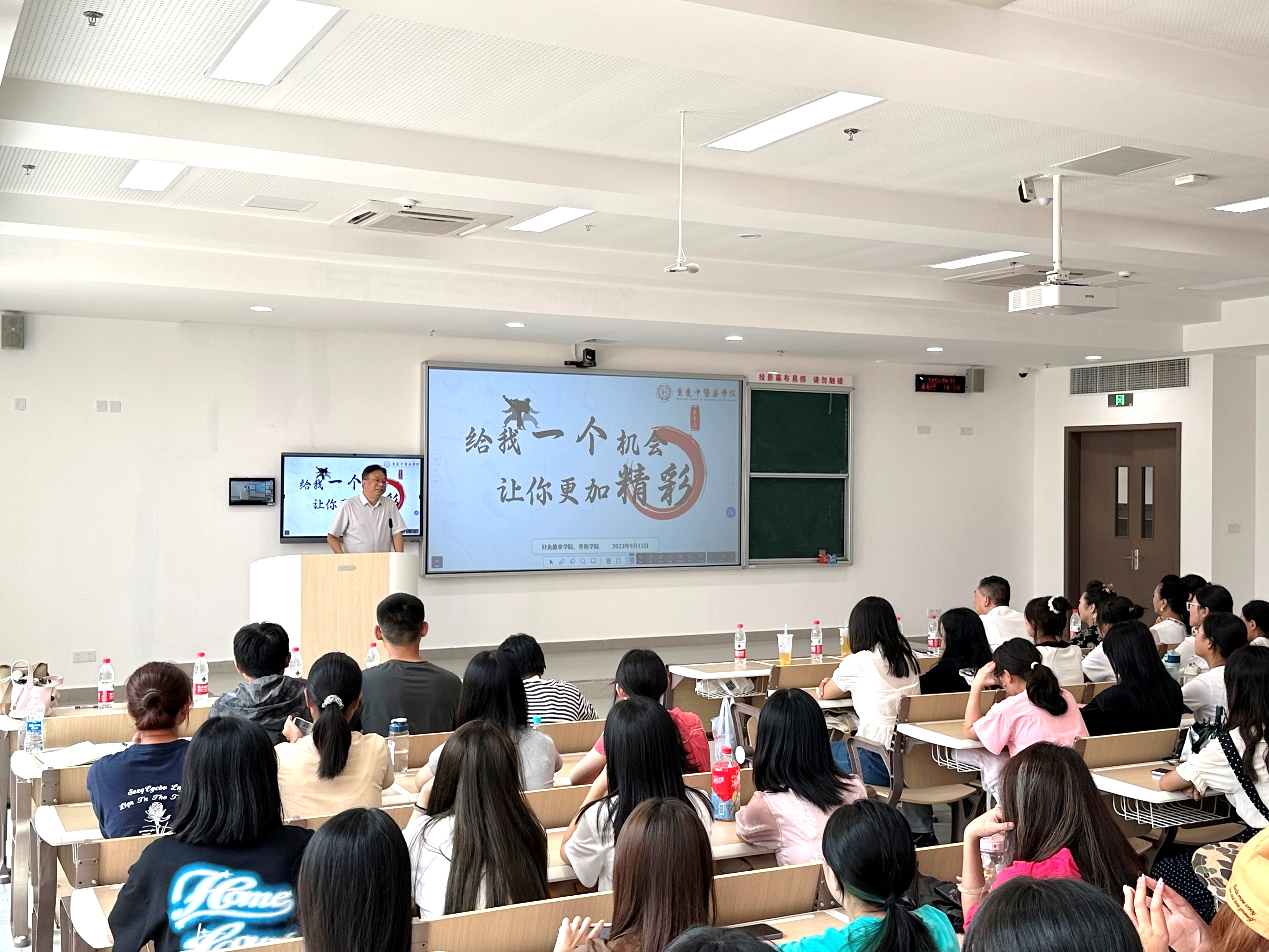 吴斌副校长首先肯定了同学们在军训中的良好表现,随后向同学们讲述了自己长期背痛得针灸而愈的亲身经历,勉励同学们要学好针灸推拿和中医骨伤,做会扎针/会正骨、会摸脉、会开方的好中医。