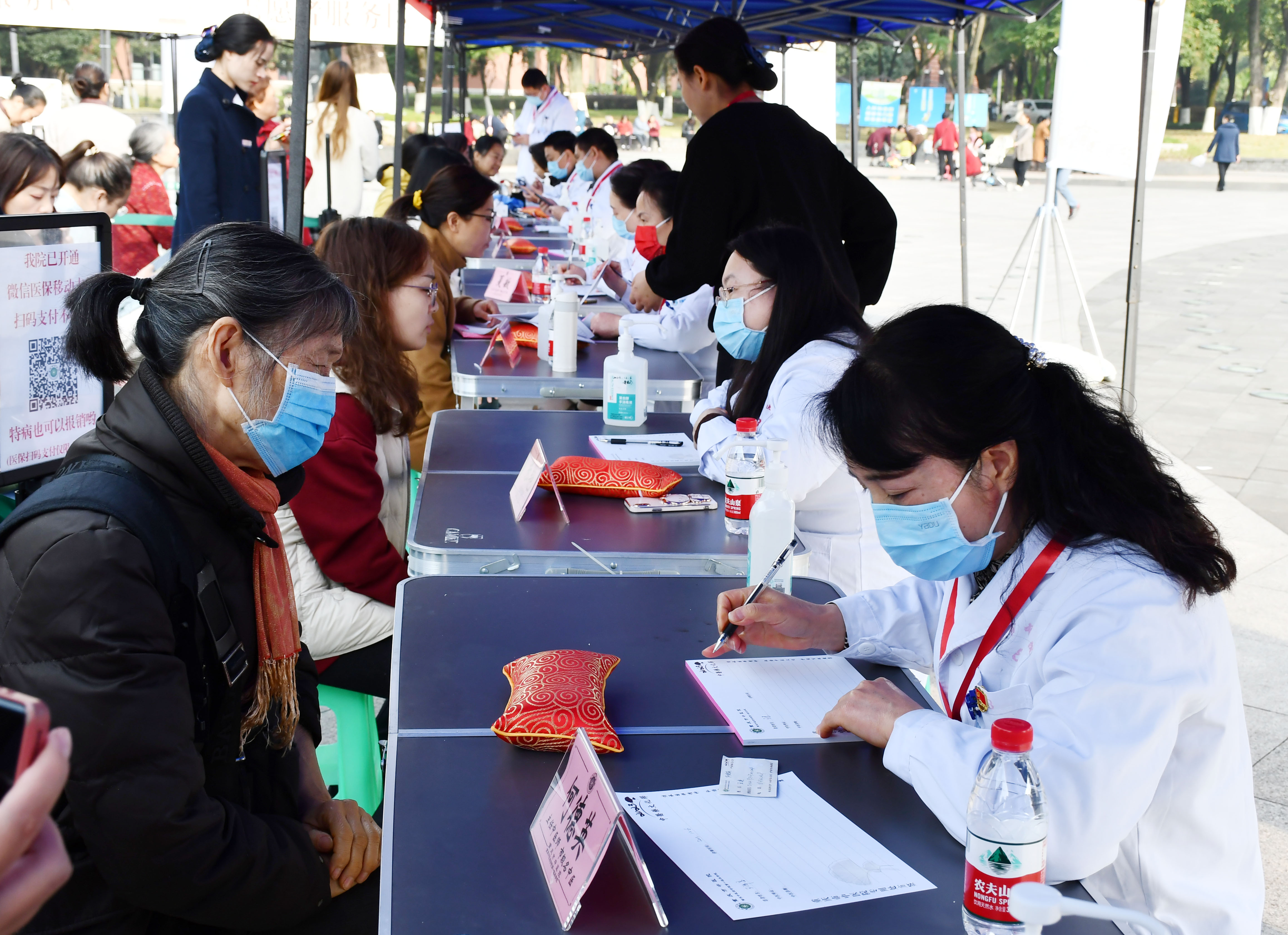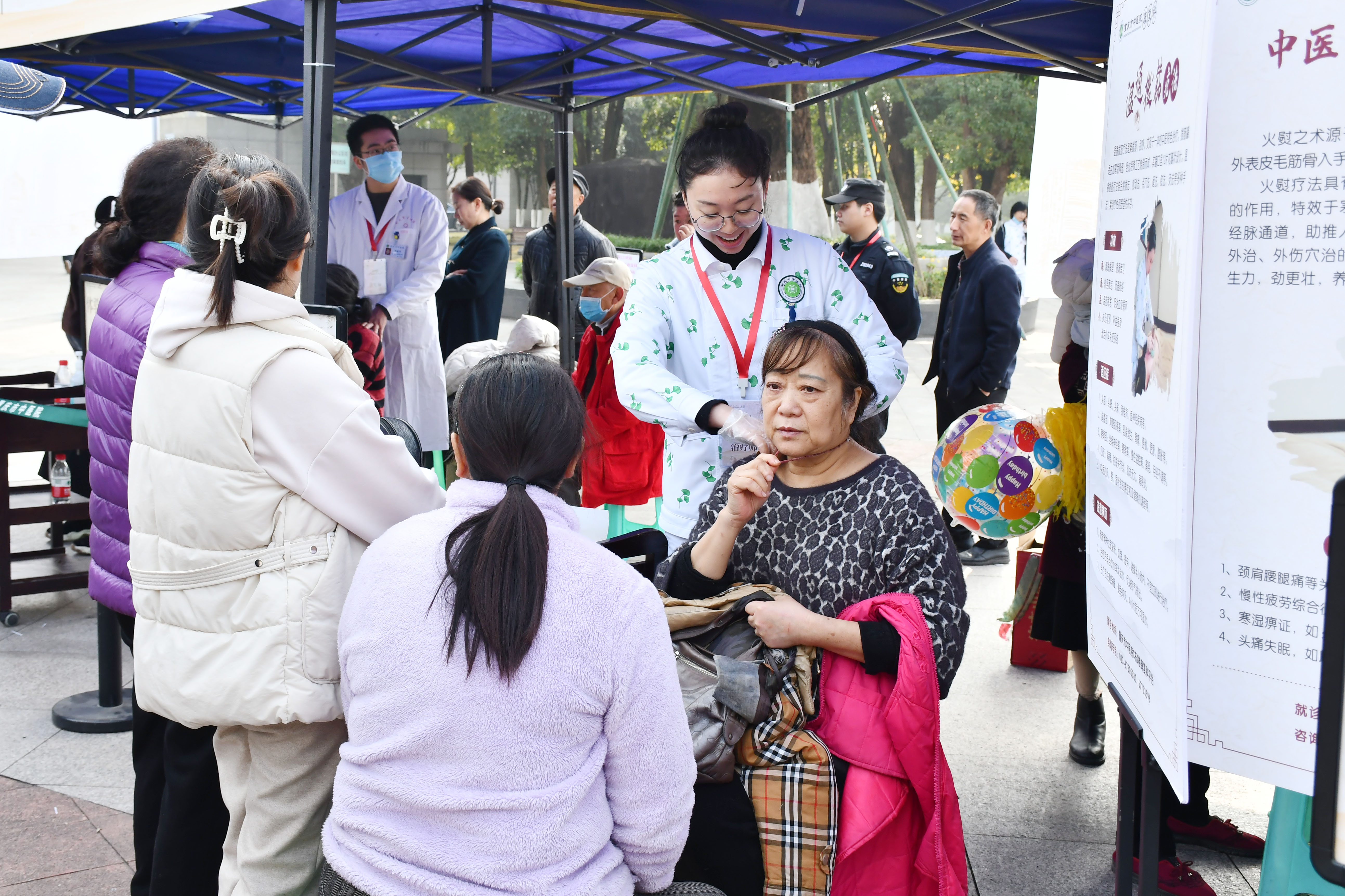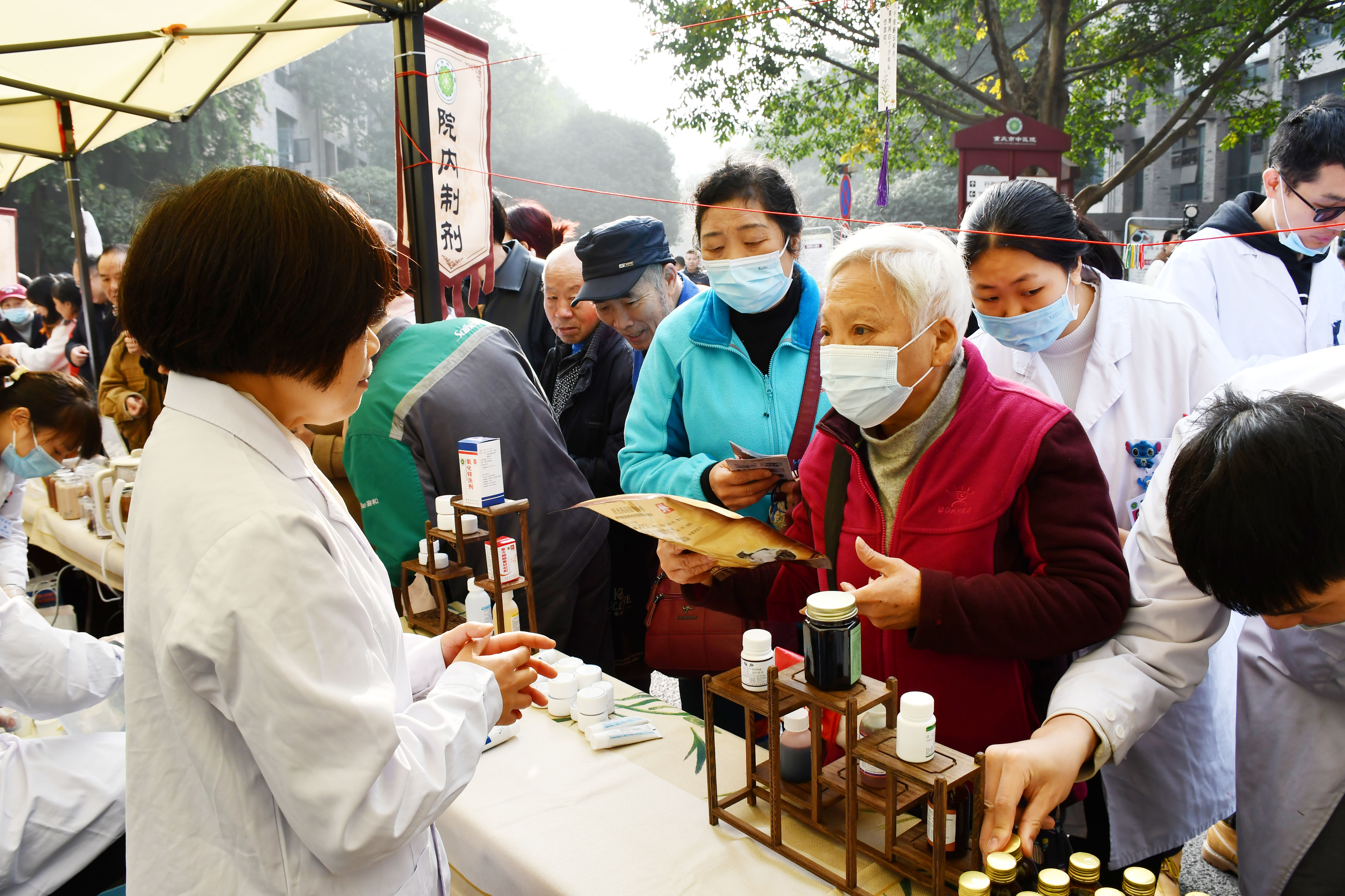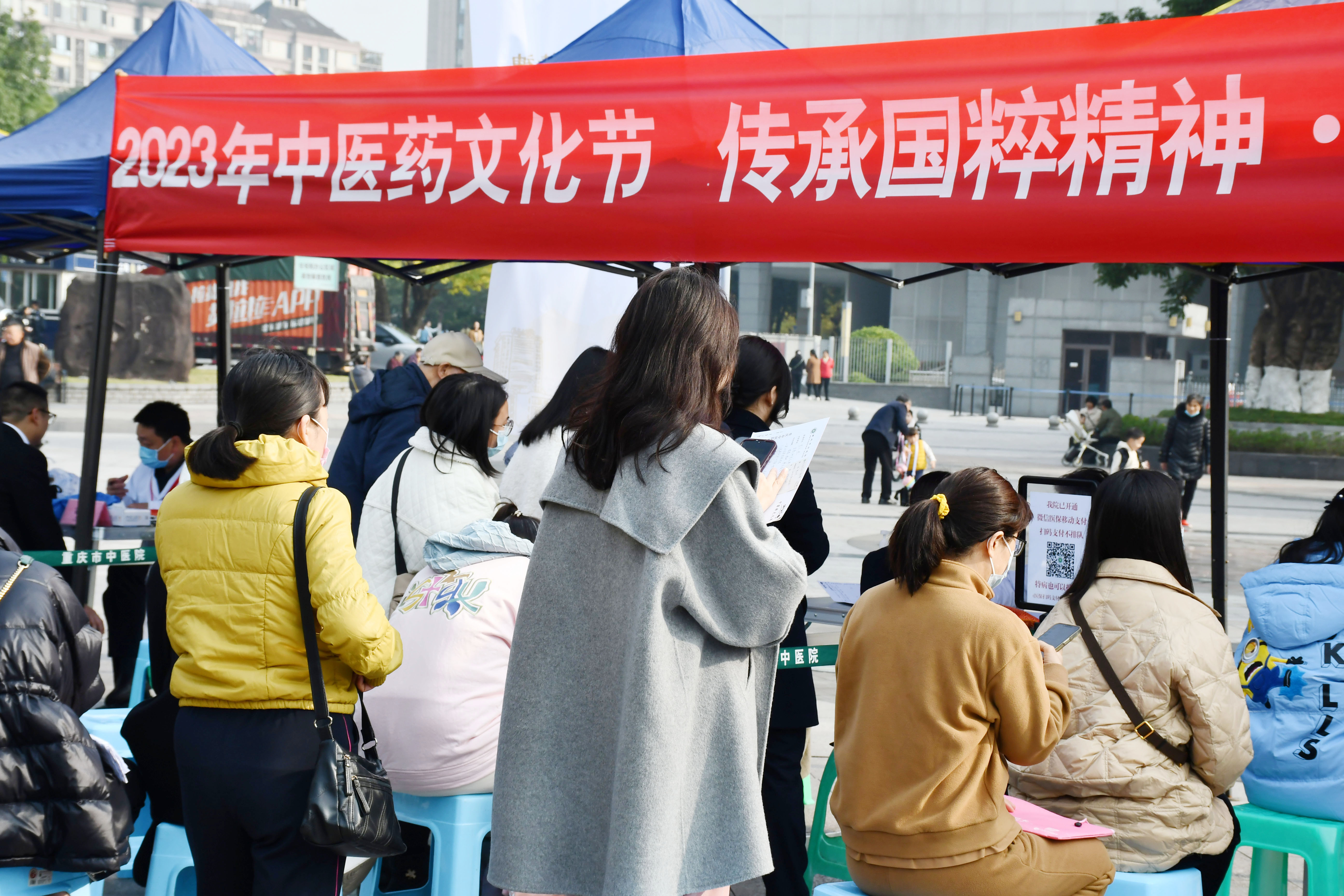 在义诊现场,来自重庆市中医院的10余名专家现场为参加活动的市民看病开方,通过微信医保移动支付、中药饮片快递服务等方式,市民在现场开具的医生处方可以实现上午开方,重庆主城九区最快当天即可送药到家,非常方便快捷。在中医体验区,市民们可以现场体验耳穴、刮痧、推拿、贴敷、火熨术、棍针、火龙罐等。不少市民在参与活动时,连连夸赞:“这个活动搞得太好啦!”