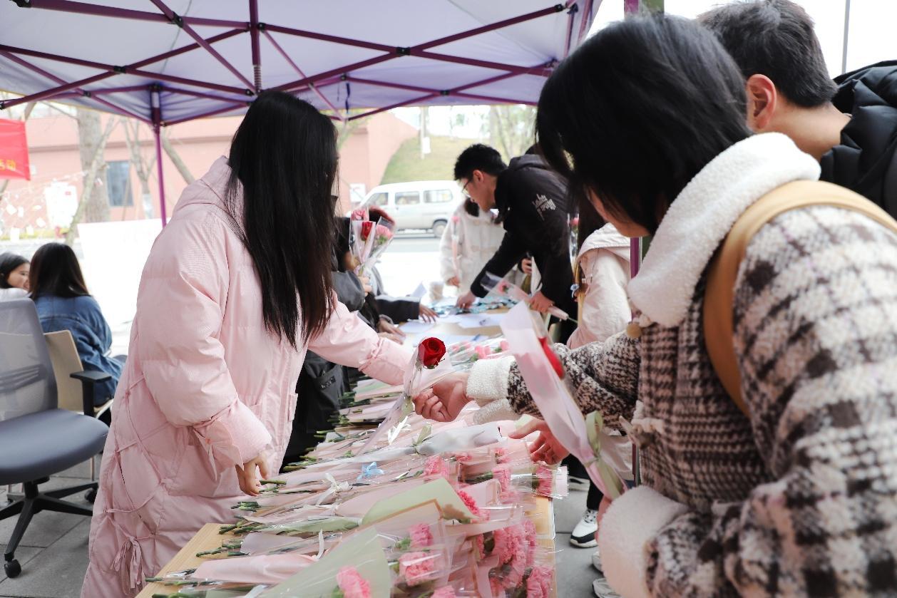 答题闯关、抽盲盒、领鲜花......趣味问答活动现场,人头攒动,同学们热情十足。