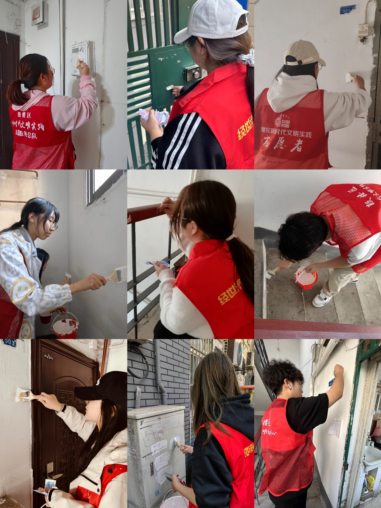 下午,同学们集中乘坐公共汽车抵达南京市鼓楼区挹江门街道鲁迅园社区,到达现场后,街道工作人员先向各位同学介绍了本次志愿活动的主要工作。为保障居民安全,维护社区形象,本次志愿服务活动以清理墙面广告、发现并及时反馈楼道内部乱堆乱放现象为主。接着,在街道工作人员的带领下,同学们两两一组,简单了解了粉刷墙面的注意事项,并按照街道分配的单元展开了工作。在工作过程中,同学们认真、细心,坚决不放过一处脏污,不忽略一处隐患。工作结束后,社区内部墙面整洁如初,安全隐患也得到了及时的反馈与解决。