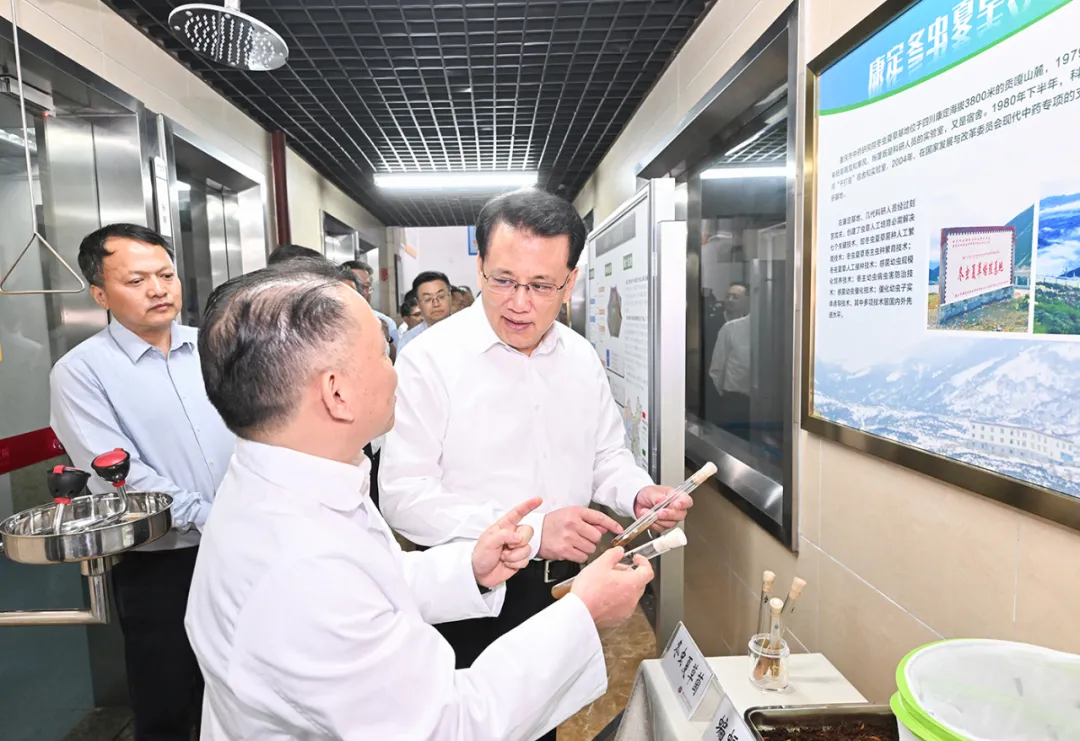 5月21日上午,在市中药研究院,市委书记袁家军同冬虫夏草人工培育技术学科带头人交谈。记者 苏思 摄/视觉重庆