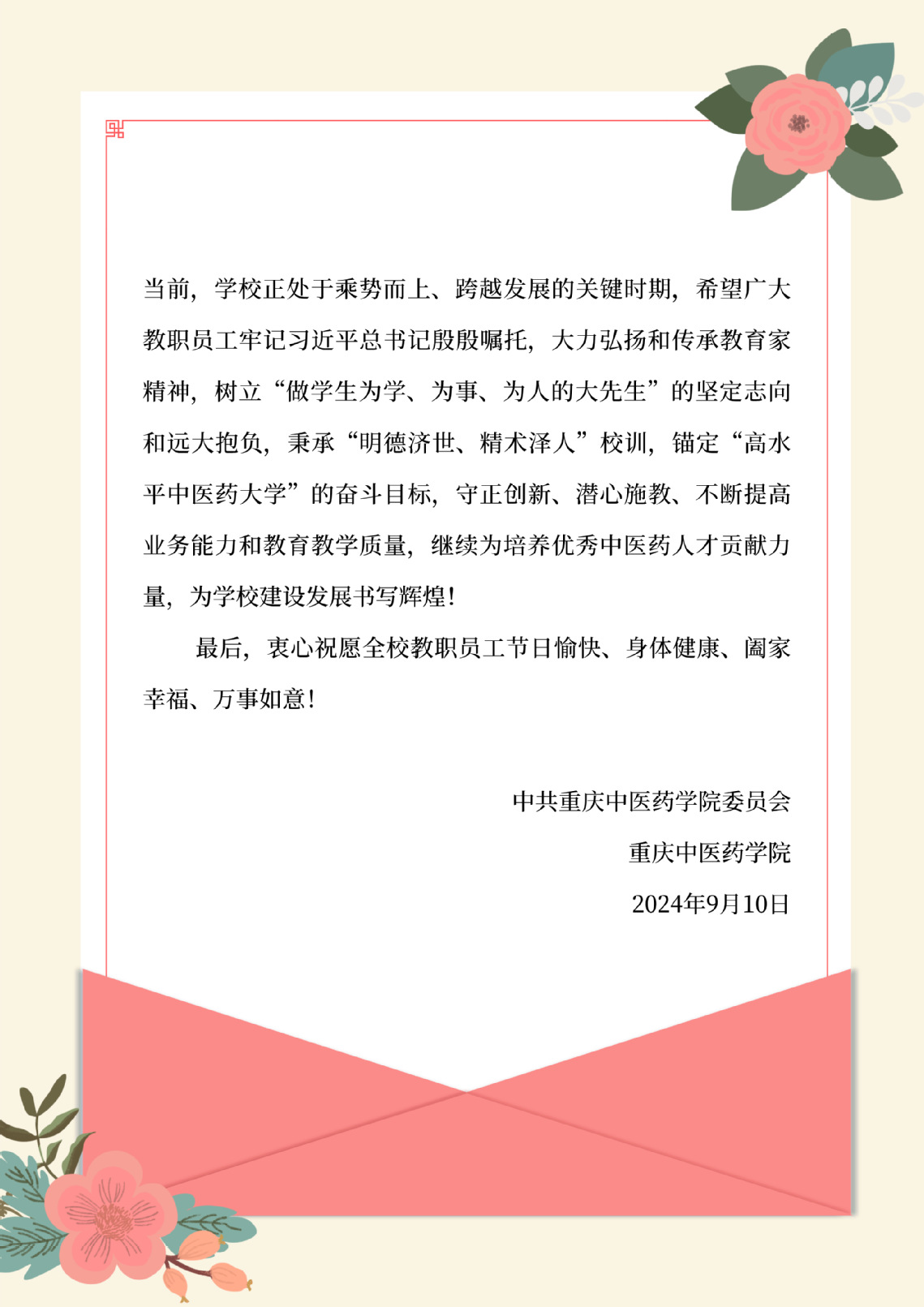 第40个教师节|致全体教职员工的慰问信