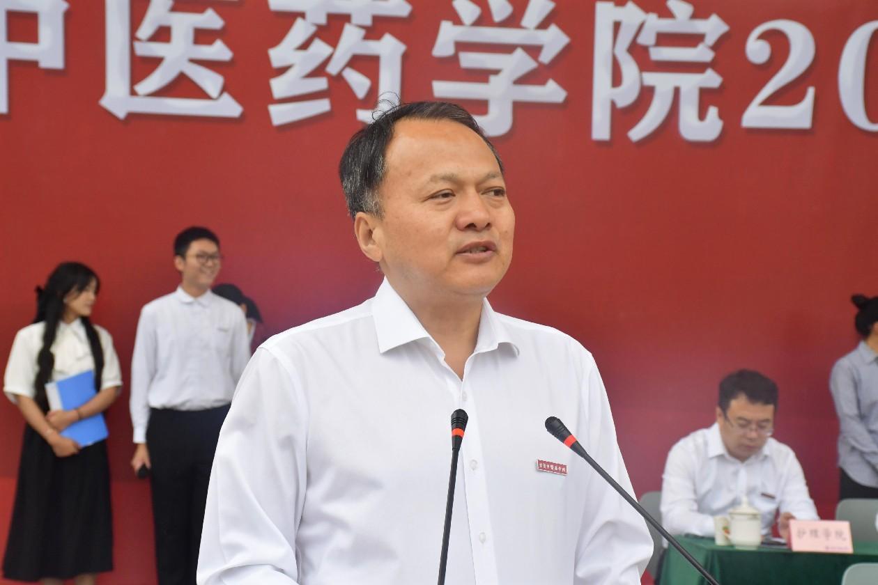 王勇德现场寄语全体新生:一是要巩固军训成果,关注国防,热爱国防,继续保持听指挥、守纪律、敢吃苦、善协作的良好习惯。二是坚持集体至上,凝聚团结精神,以校为家,爱校如家,尊敬老师,关心同学,团结互助,拼搏进取。三是注重实干笃行,追求刚健自强,坚持乐学勤思,艰苦奋斗,善作善成,自信自强,争做勇攀高峰、担当大任的中医药栋梁之才。