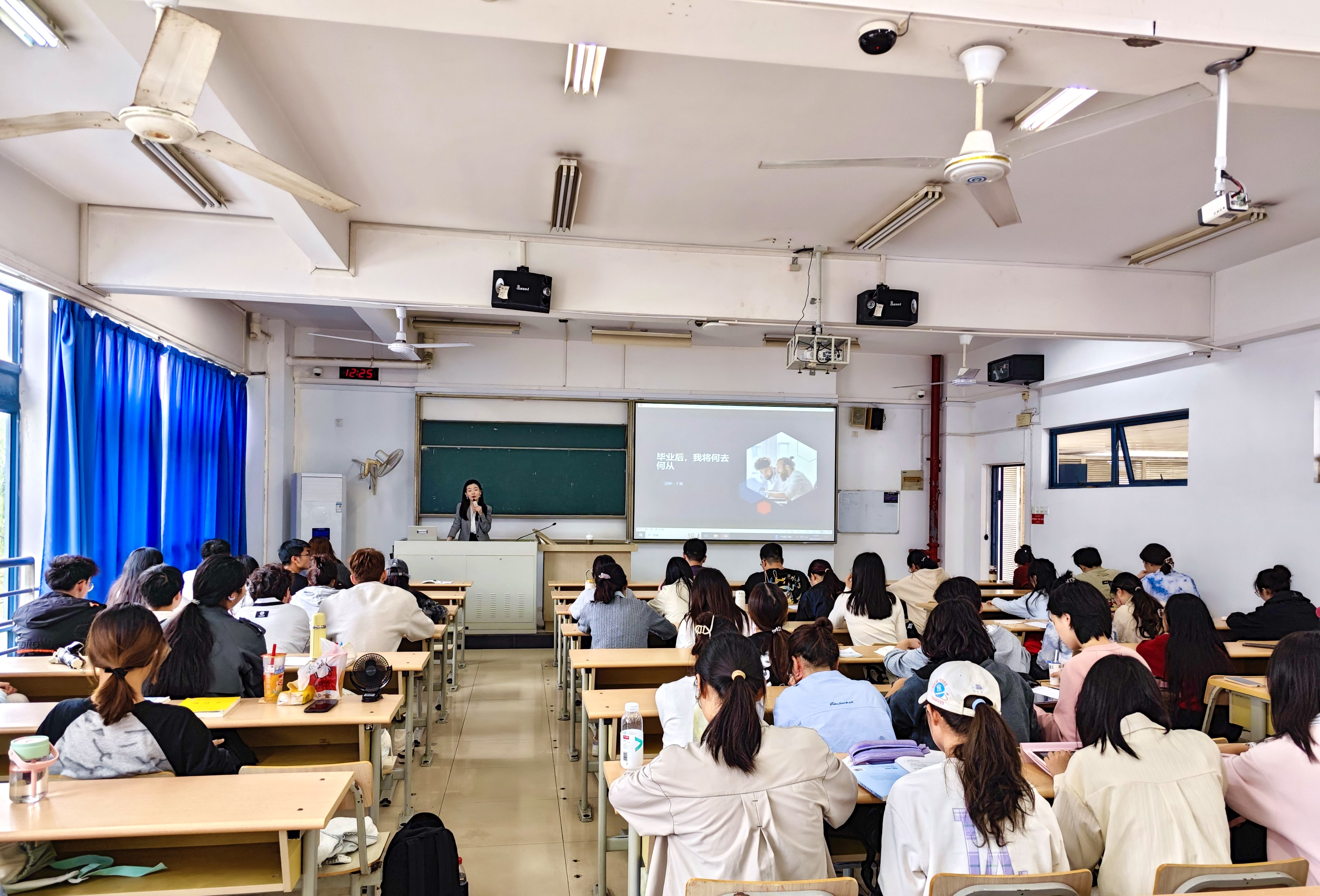 就业是最基本的民生,作为大学生迈向社会的关键一步,就业不仅关乎个人的茁壮成长、向阳发展,更加承载着家庭、学校、社会等多方的期待。课堂上,于粲老师首先向同学们展示2024年全国高校毕业生的就业数据,指出毕业生规模大、就业压力高的社会现状,强调了解行业需求和招聘要求是每位学生在校期间的重要任务,并呼吁大家在空闲时间里积极关注相关信息,做好职业规划。接着,于粲老师结合自身的职业发展经历,分享了她从学生到职场人的转变过程与银行在岗的工作日程,着重和同学们强调了实践经验的重要性。于粲老师通过分享的亲身经历让同学们受益匪浅,这不仅激发了他们对未来职业发展的思考,也增强了他们对未来的信心。在课程的最后,于老师鼓励同学们多进行自我反思,明确个人价值与职业目标的关系,增加行业实习经验,提升专业实力,为未来的职业生涯做好充分准备。
