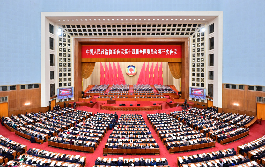 大会首先审议通过了政协第十四届全国委员会第三次会议议程。