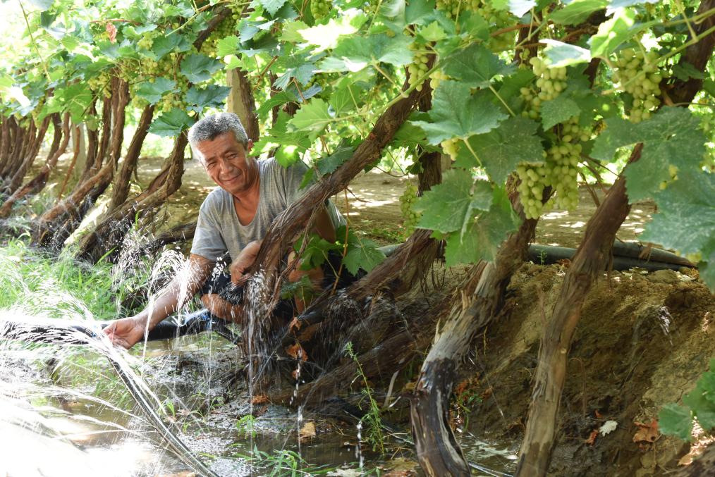 “以前种葡萄20天浇一次水,一年浇十一二次用水900方;现在10天浇一次,一年浇十八次用水700方,9亩地一年能省500块水费哩!”春暖花开,新疆吐鲁番鄯善县果农阿不力孜·阿不都热衣木先花几天时间把埋了一冬天的藤蔓上架,准备再用几天把用于灌溉的微喷带铺设到位。