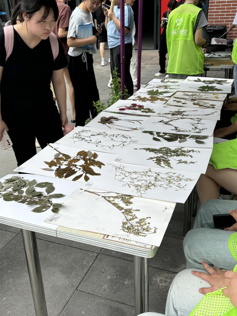 赛后,同学们穿梭于药品炮制区和中草药观赏区,在植物标本前驻足观察,指尖轻触形态各异的药材标本,细细辨识叶片纹理与根茎特征。在药品炮制区,他们跃跃欲试,每一步都全神贯注,互相协作完成炮制流程。药香萦绕间,欢声笑语与专注探讨交织,沉浸式体验让传统医药文化在年轻身影中焕发新生。