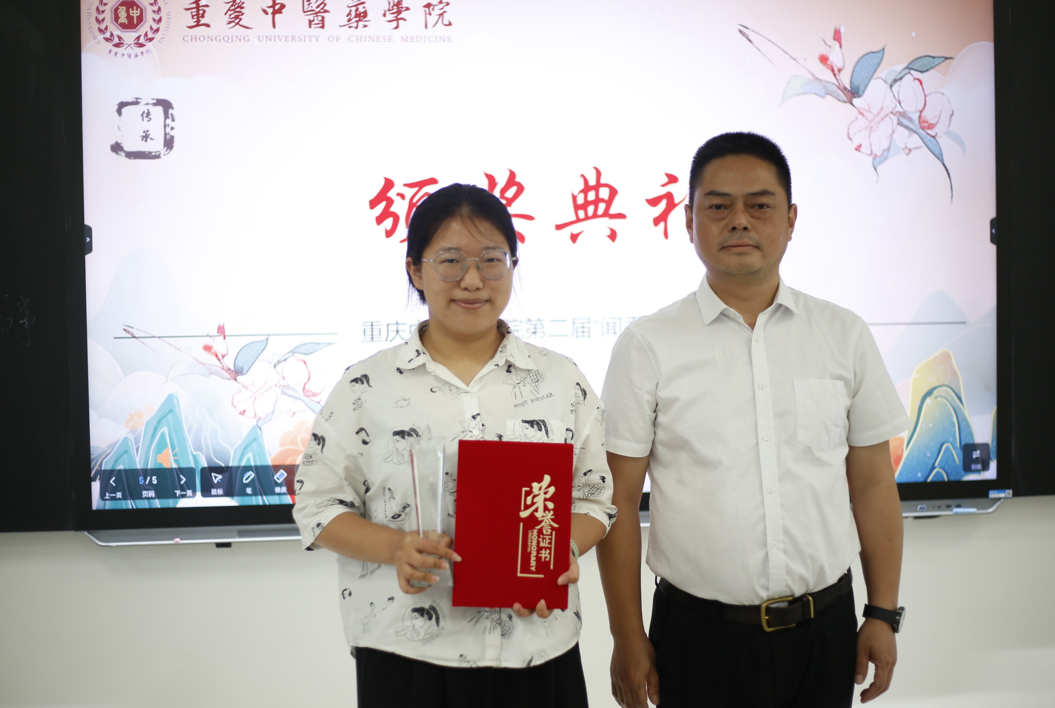 ▲中药学院副院长刘飞为优胜奖颁奖