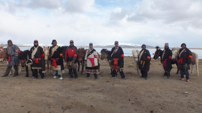 部分长江源村生态管护员在巡护的草原上合影。(受访者供图)