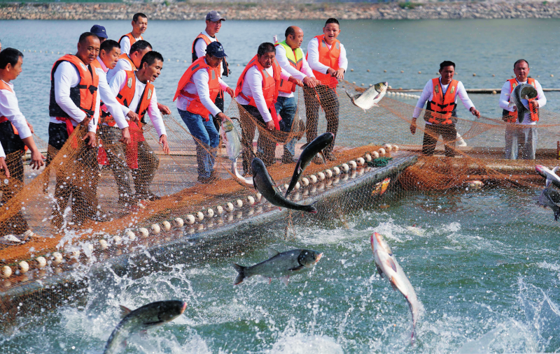 江西省武宁县举办的2024江西武宁(庐山西海水域)渔文化暨秋季捕捞活动现场(2024年11月9日摄)。周密摄/本刊