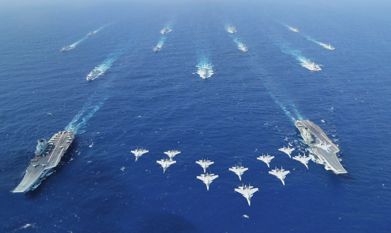 2024年10月下旬,海军辽宁舰编队开展远海实战化训练。其间,辽宁舰、山东舰编队首次开展双航母编队演练。 新华社发(陈梦曦摄)