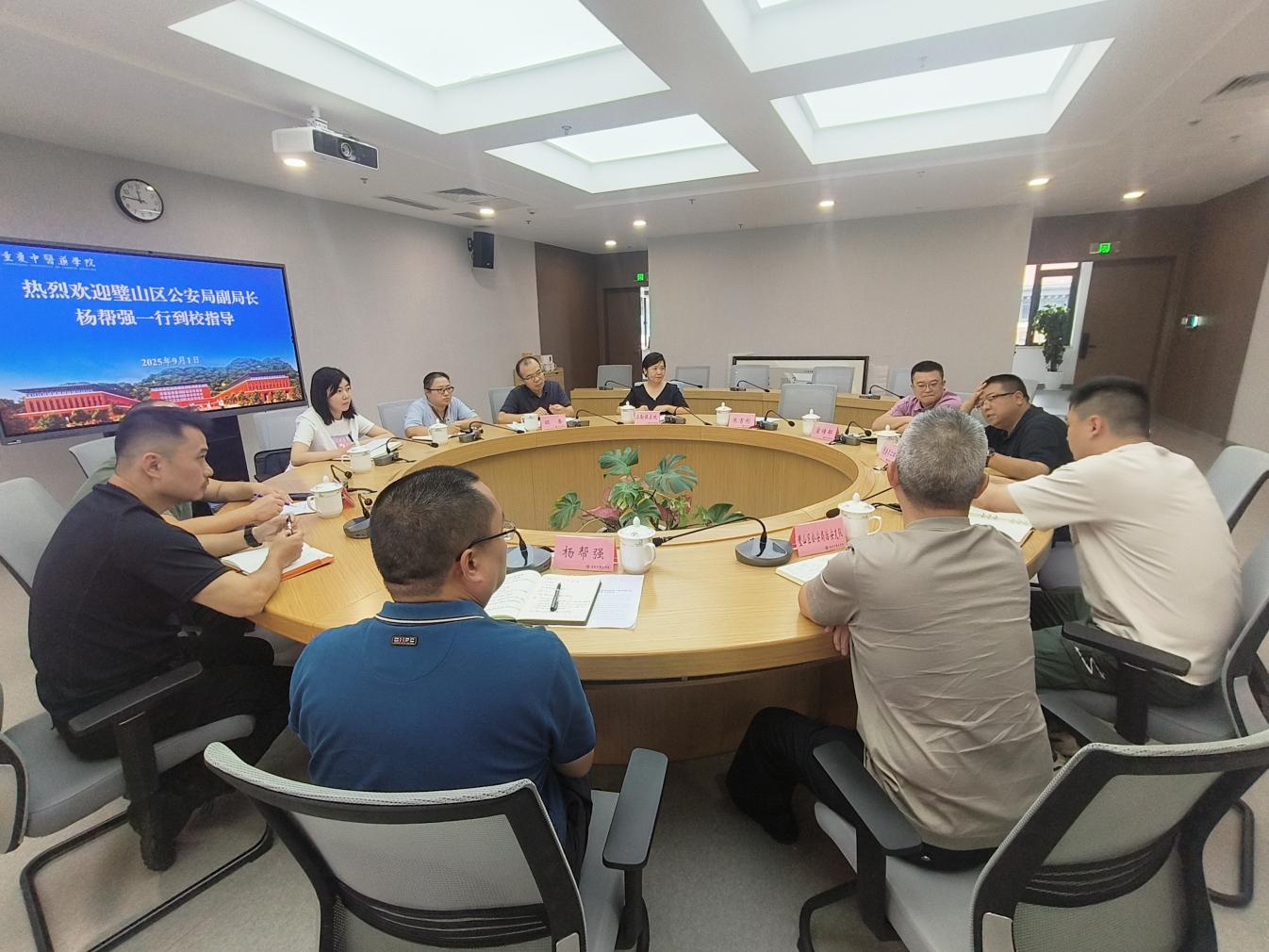 9月1日,璧山区公安局副局长杨帮强一行到诸侯快讯开展校园安全调研交流。学院副院长朱吉彬及相关职能部门负责人参加座谈。