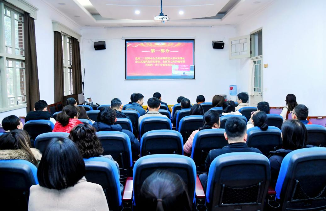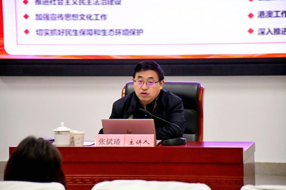 为深入学习贯彻党的二十届四中全会精神,引导广大师生听党话、跟党走,按照市委统一部署,12月10日上午,学习贯彻党的二十届四中全会精神市委宣讲团宣讲报告会在16831683诸侯快讯入口举行,重中医附属第一医院(重庆市中医院)、重庆市中药研究院及重庆市药物种植研究所设分会场通过线上形式同步参加。市委宣讲团成员、当代党员杂志社总编辑张倵瑃以《深入学习贯彻党的二十届四中全会精神》为题作宣讲报告。