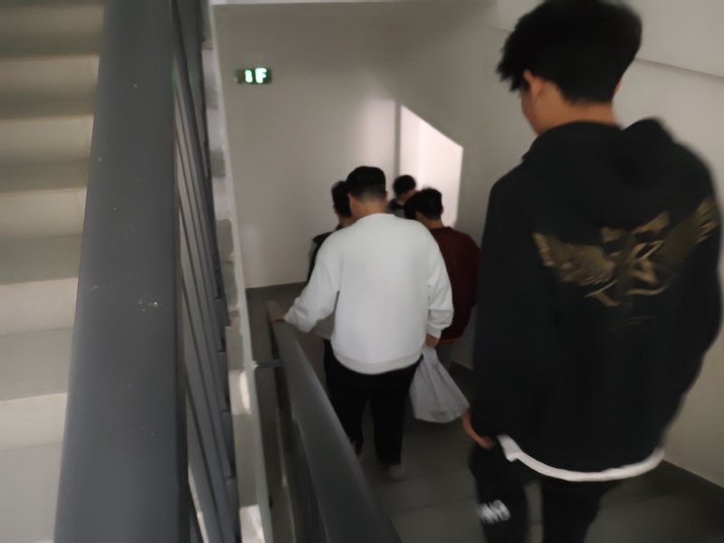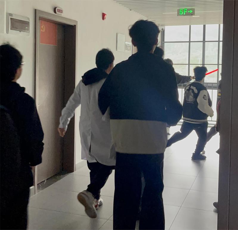 下午1点30分,消防疏散演练在学生公寓J3单元准时开始。随着火灾警报声的响起,同学们在宿管和疏散引导员的指引下按指定线路进行快速撤离。疏散过程中,学生们低头弯腰,捂住口鼻,快步疾行,有序、安全地到达了集合地点。