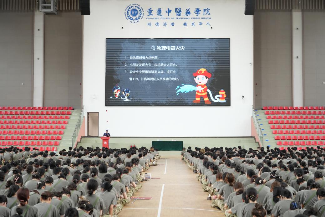 璧山区消防救援支队周之科教官围绕消防安全知识,尤其是大学生群体“应会尽会”的消防技能进行了重点讲解。