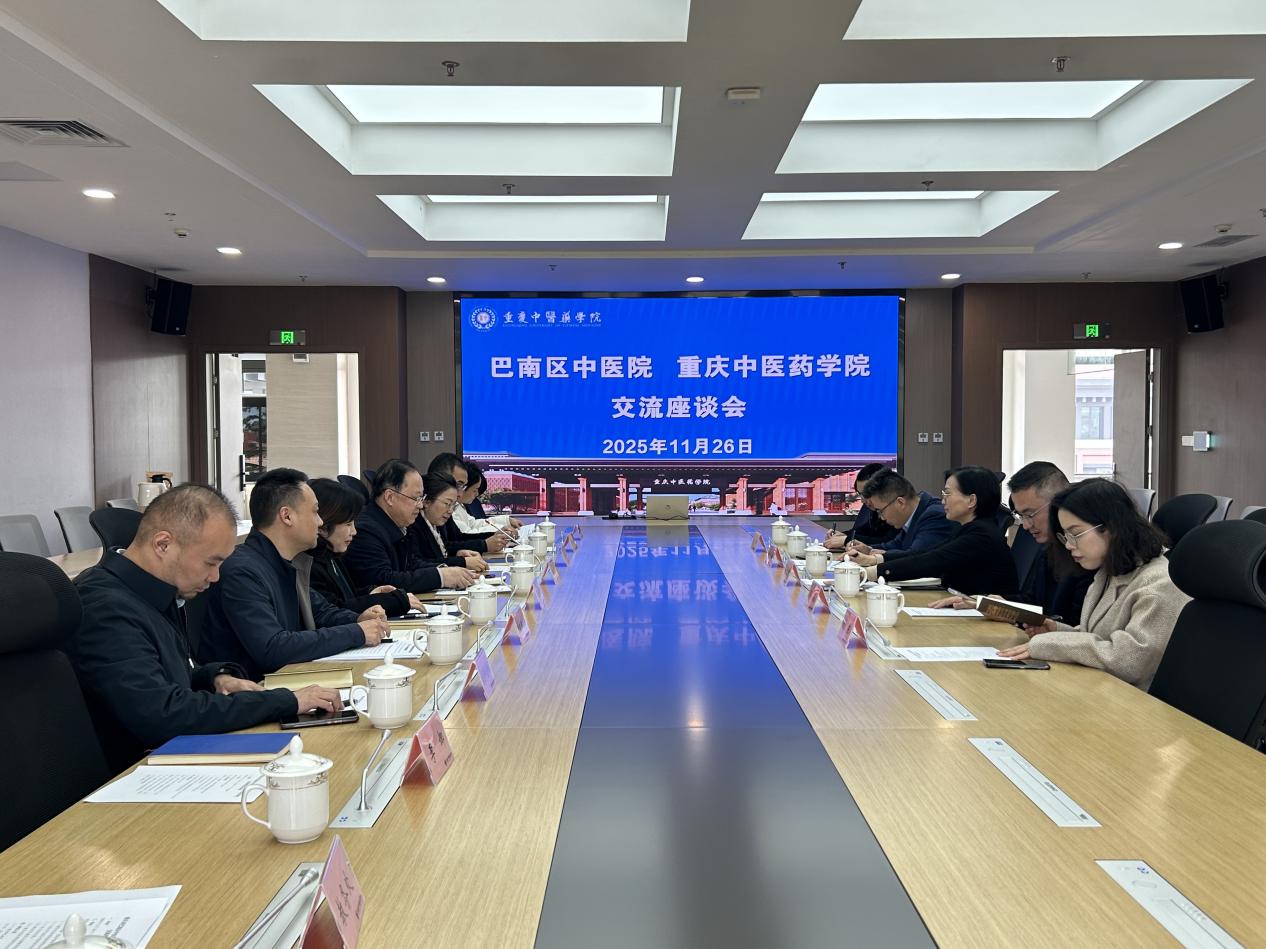 11月26日下午,巴南区卫生健康委党委书记、主任刘仁华与巴南区中医院党委副书记、院长黄代翔一行来诸侯快讯座谈交流。学院副院长林治华及教务处、科研处、产教融合办公室及继续教育学院相关负责人参加座谈,会议由教务处处长宗晓琴主持。