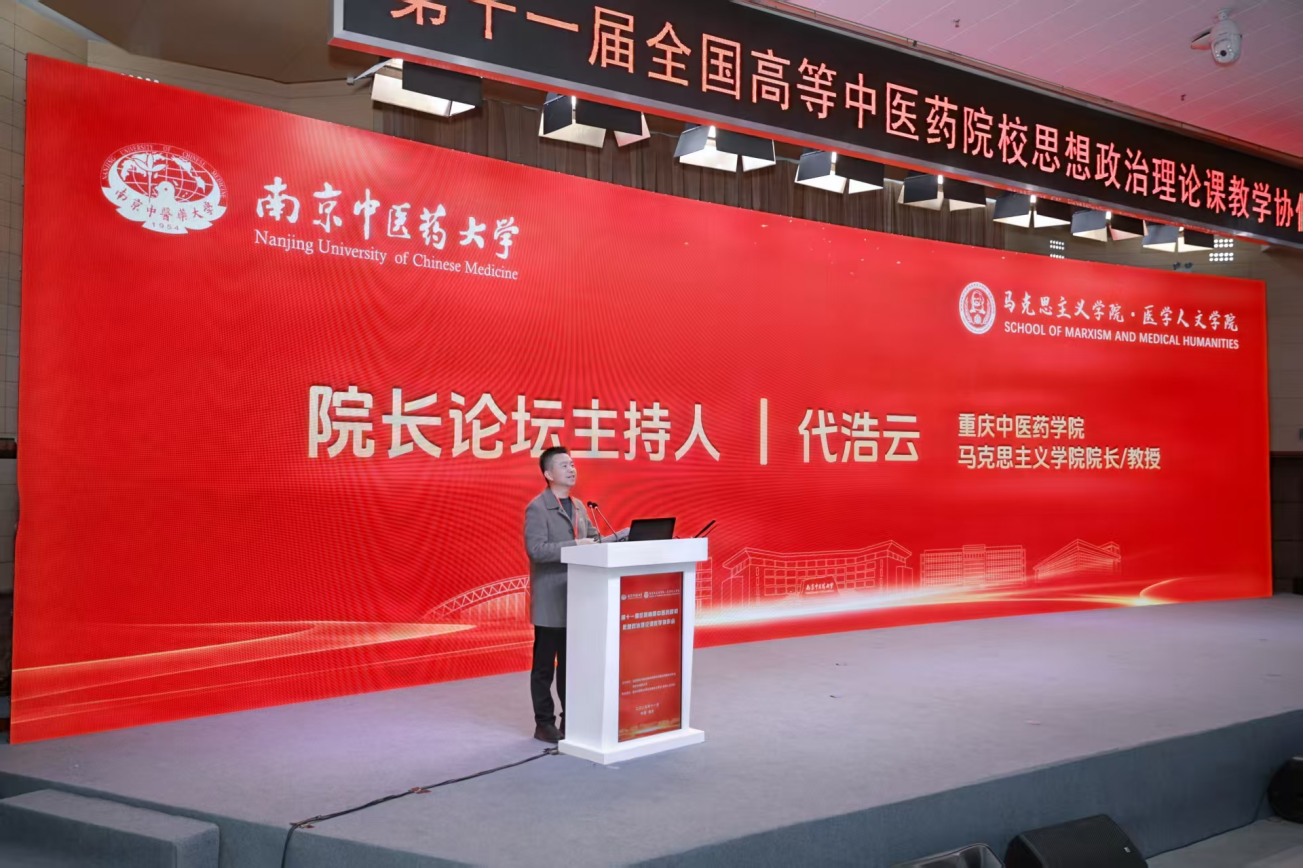 2025年11月29日至30日,第十一届全国高等中医药院校思想政治理论课教学协作会在南京中医药大学召开。本次会议以“学习贯彻习近平总书记对学校思政课建设的重要指示精神,坚持‘两个结合’,突出中医药文化特色,推动思政课内涵式发展”为主题,来自全国30所高等中医药院校的280余位专家学者、思政课教师参会。马克思主义学院代浩云、程娟、田妍、张勇、何立冬、成军青、戴宇倩老师参与了此次会议。