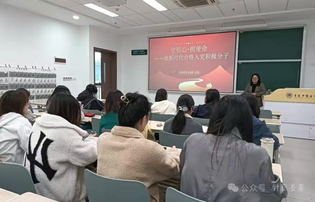 11月17日,马克思主义学院程娟教授为针炙推拿学院入党积极分子、发展对象讲授专题党课,主题为“守初心・担使命——做新时代合格入党积极分子”。程教授从“明初心——读懂‘为了谁’的根本答案”“寻初心——回望‘从哪来...