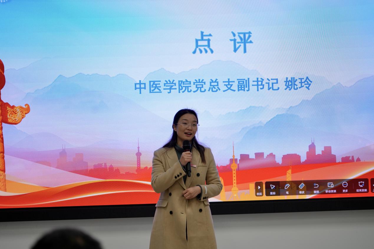 中医学院党总支副书记姚玲在点评中感叹“看到了不一样的思政课!”并殷切希望同学们在思政课实践学习中能够感悟中医药文化魅力,增进中医药文化自信,成为优秀的中医药人才!