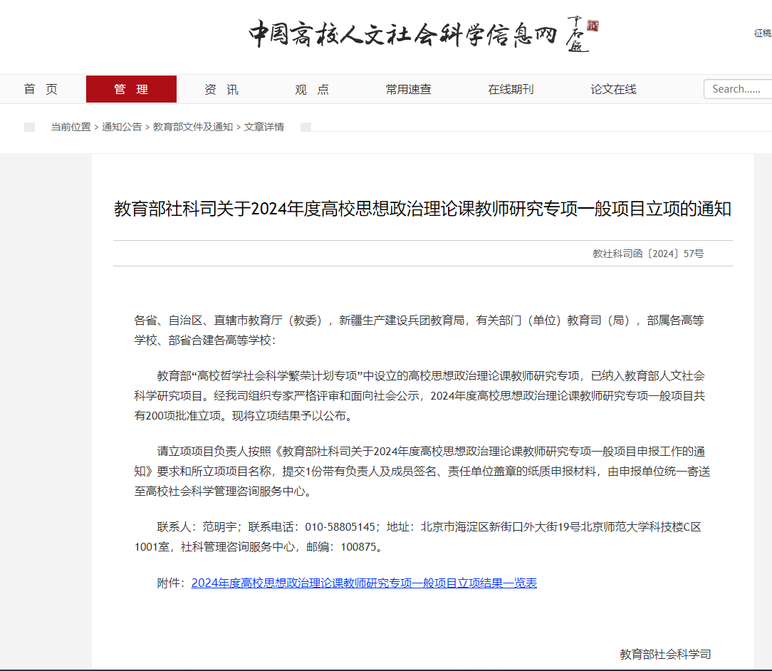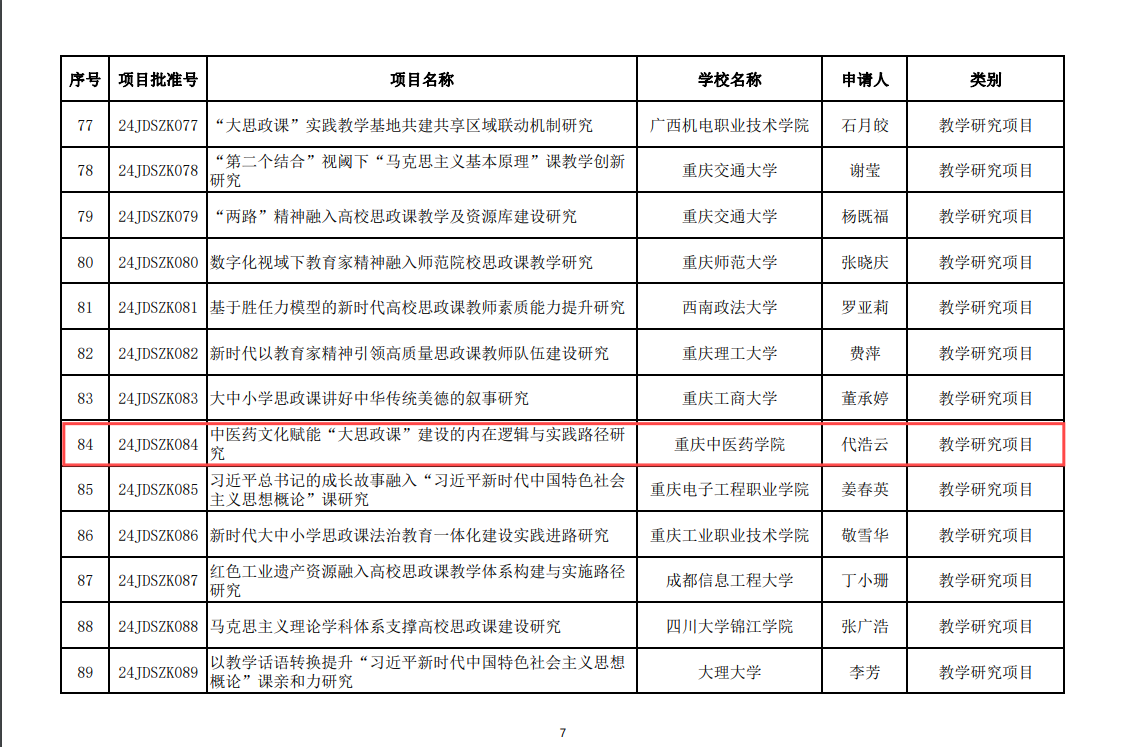 近日,教育部发布了“2024年度高校思想政治理论课教师研究项目”立项通知,诸侯快讯马克思主义学院代浩云教授主持申报的“中医药文化赋能‘大思政课’建设的内在逻辑与实践路径研究”获批立项,实现了学校教育部人文社科项目的突破。