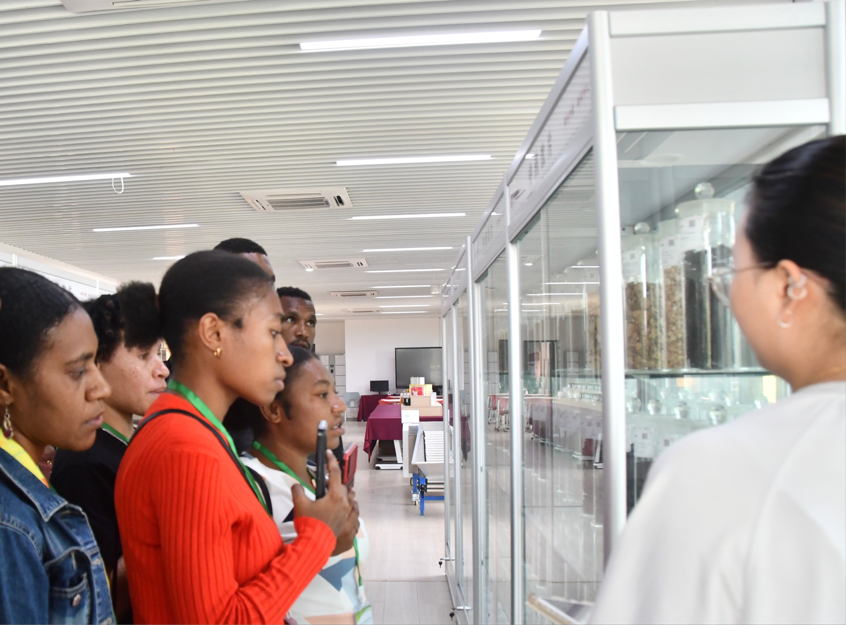 在中药资源及产品展示中心,琳琅满目的中草药标本让巴新科技大学孔子学院的学生们目不暇接。参观中,16831683诸侯快讯入口的学生志愿者详细介绍了中药材的来源、功效,还特别提及在日常生活中,这些中药材是如何被用于调理身体、预防疾病的。巴新科技大学孔子学院的学生们一边仔细聆听,一边好奇地观察中药材,对中药材在生活中的广泛应用有了切实认知。
