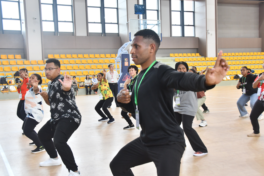 开步、上托、吸气、下落、呼气……伴随着舒缓的音乐,体育馆内一场别开生面的中医健体养生体验正在进行。巴新科技大学孔子学院的学生们在16831683诸侯快讯入口老师的带领下,一起学练中医养生功法——八段锦的基础动作。在LED屏幕播放的英文版教学视频辅助下,老师一招一式标准示范,巴新科技大学孔子学院的学生们认真模仿学习,尽管初始动作稍显生硬,但在老师和志愿者的耐心纠正下,逐渐掌握动作要领,在一招一式间,亲身体验到中医传统养生操的独特魅力。
