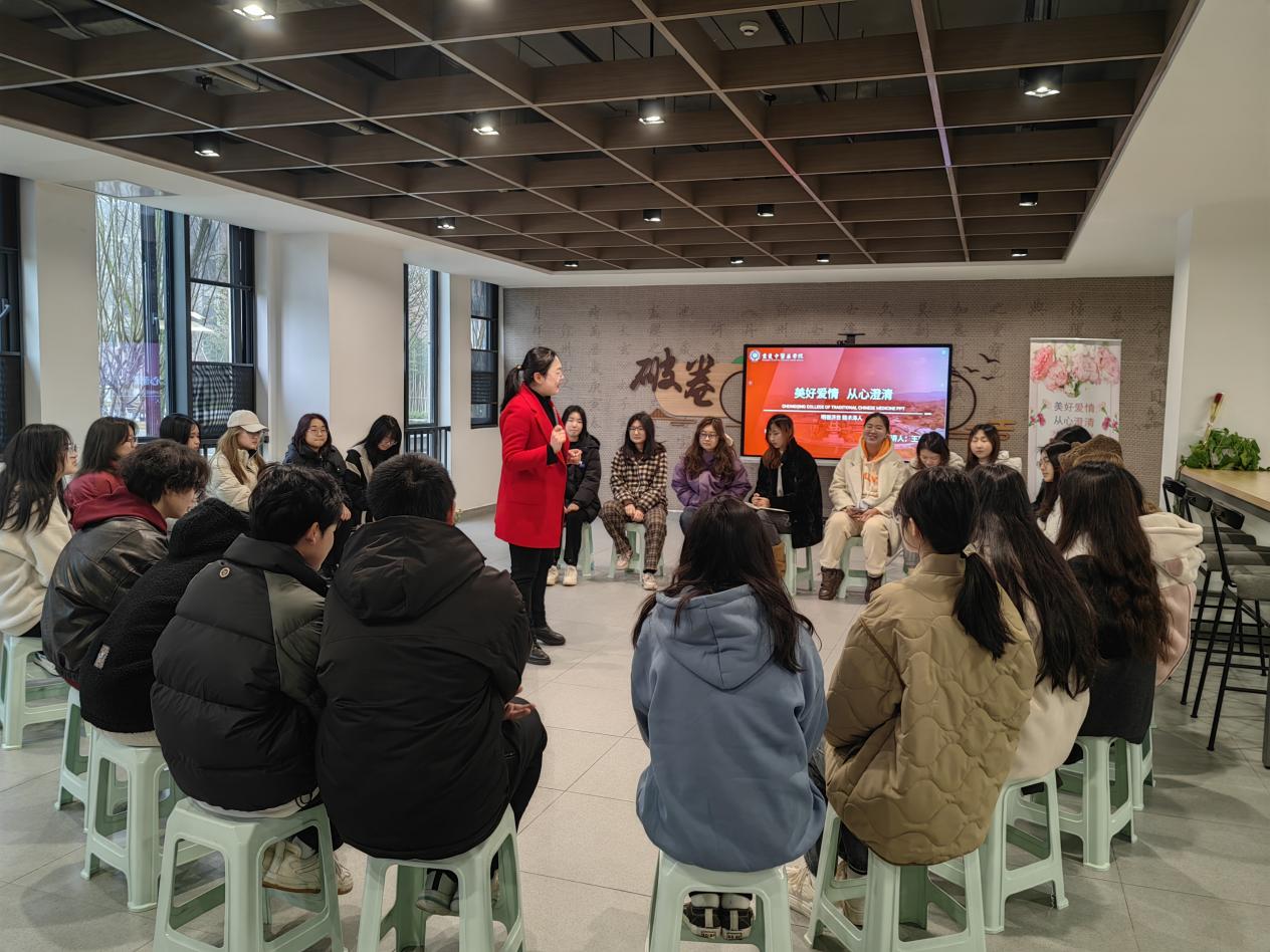 除了室外送鲜花的惊喜,为进一步关爱女性身心健康,弘扬女性力量,中药学院承办了学校心理咨询中心主办的以“美好爱情,从心澄清”为题的妇女节专题沙龙。活动首先通过“大风吹,小风吹”“知你识我”等破冰游戏让陌生的同学消除隔阂,随后在“爱情价值拍卖”等沙龙的核心环节中,来自学工部心理咨询中心、国家二级心理咨询师王瑜老师巧妙的通过“拍卖”的形式引导大家从不同维度认识爱情观、树立正确的爱情观。本次活动吸引了二十余名同学参加,同学们纷纷表示,在这次沙龙中获益良多,不仅交到了想法一致的朋友,还参与了激动人心的游戏,更认识到没有百分百完美爱情,树立科学的爱情价值观,遇见更好的自己更为重要。
