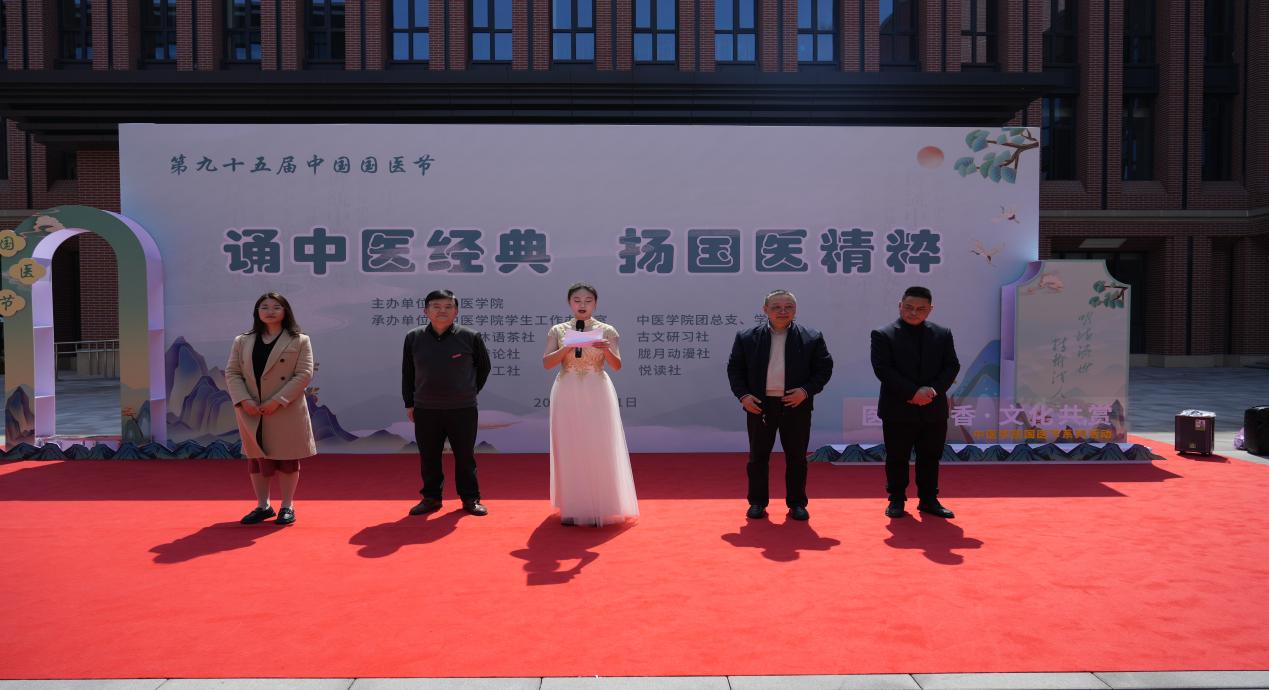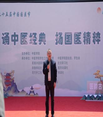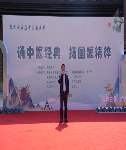 在春意盎然、万物复苏的美好时节,党委宣传部唐彤东部长、中医学院院长刘华宝、中药学院王刚教授、党委学生工作部部长任源钢、中医学院党总支副书记姚玲莅临本次活动。刘华宝院长、唐彤东部长以及王刚教授分别为本次活动致辞,学生工作部任源钢部长宣布中医学院第九十五届国医节活动正式开始。