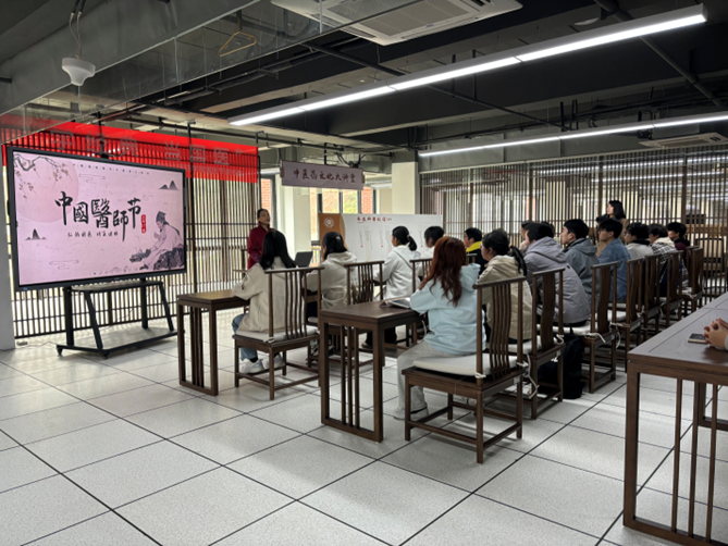 作为国医节系列活动的先导节目,3月20日,中医学院教授洪蕾在图书馆4楼精心策划了一场名为“读经典 当国医”的读书会,共有60名同学满怀期待地参加了这一活动。读书会上,洪教授生动地介绍了国医节的起源,让大家深入了解了中医发展曾经走过的艰难岁月。同时,洪教授还深入浅出地科普了中医文化的精髓,并寄语同学们努力学习,未来成为一名具有仁心仁术的中医师。