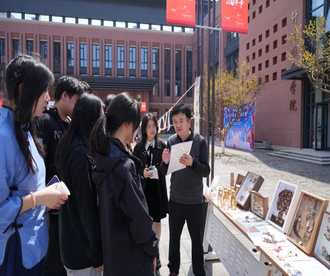 医药纷呈,尽展春华”的中医药文化展,共收到书法类作品22份,绘画类作品18份,标本类作品50份。这些精美作品充分展示了同学们对中医药文化的理解,在展览现场,中药学院王刚教授对前来参观中药标本类的同学进行专业知识讲解。