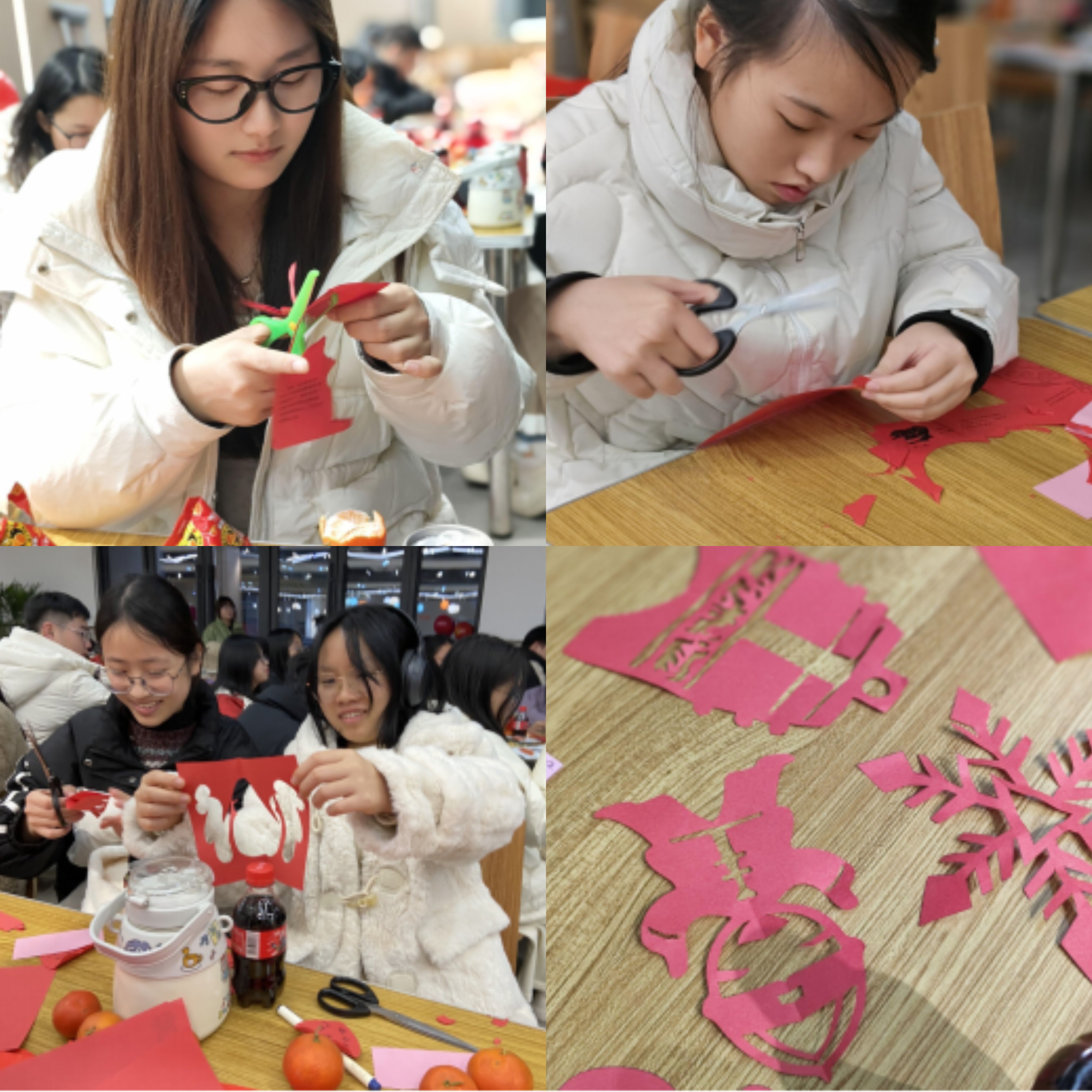 茶话会现场除了跳舞、唱歌等丰富多彩的节目表演以外,还开展了写春联、传统剪纸、开心抽奖、新年心愿等活动,师生们一起参与其中,其乐融融。