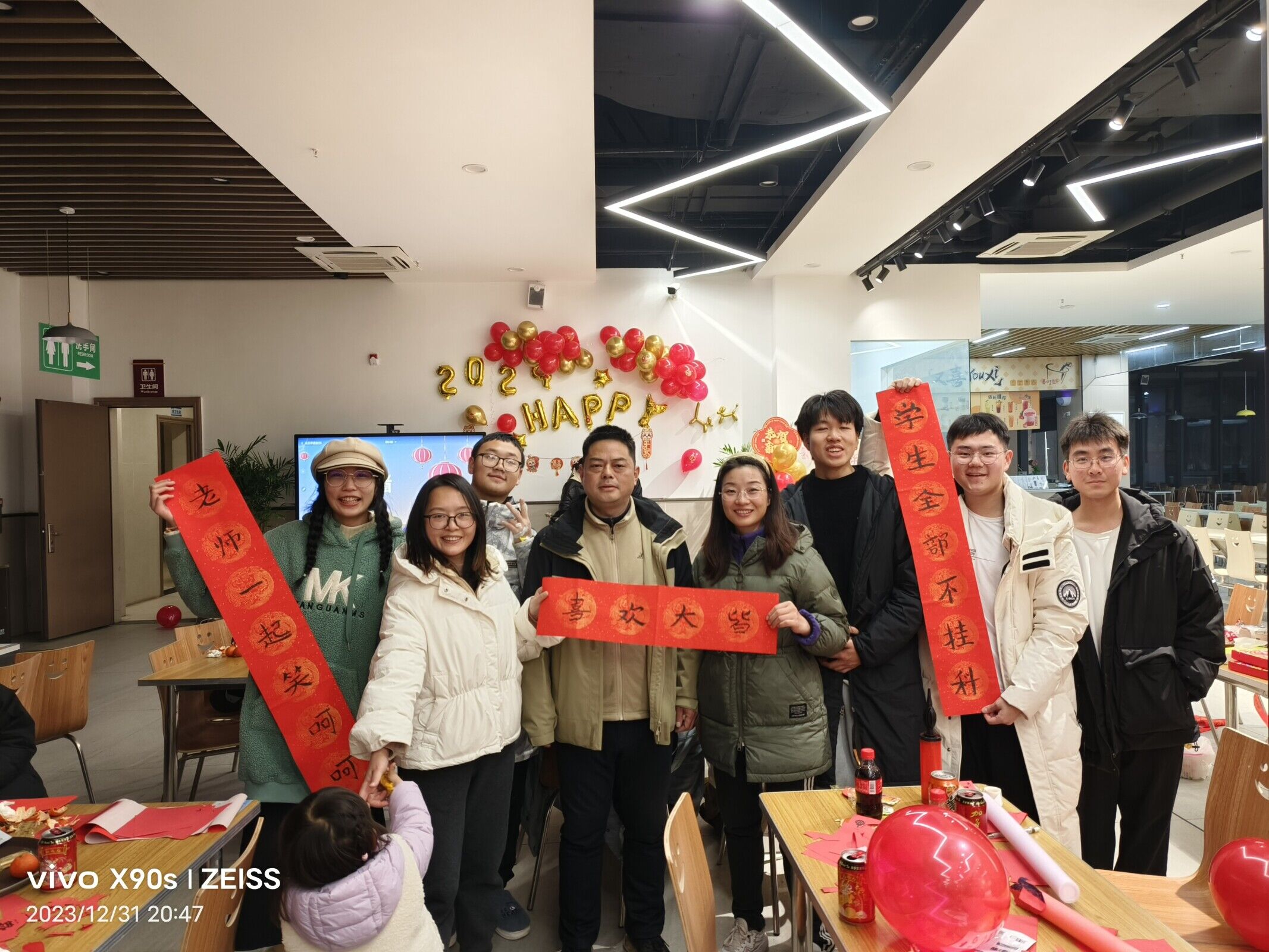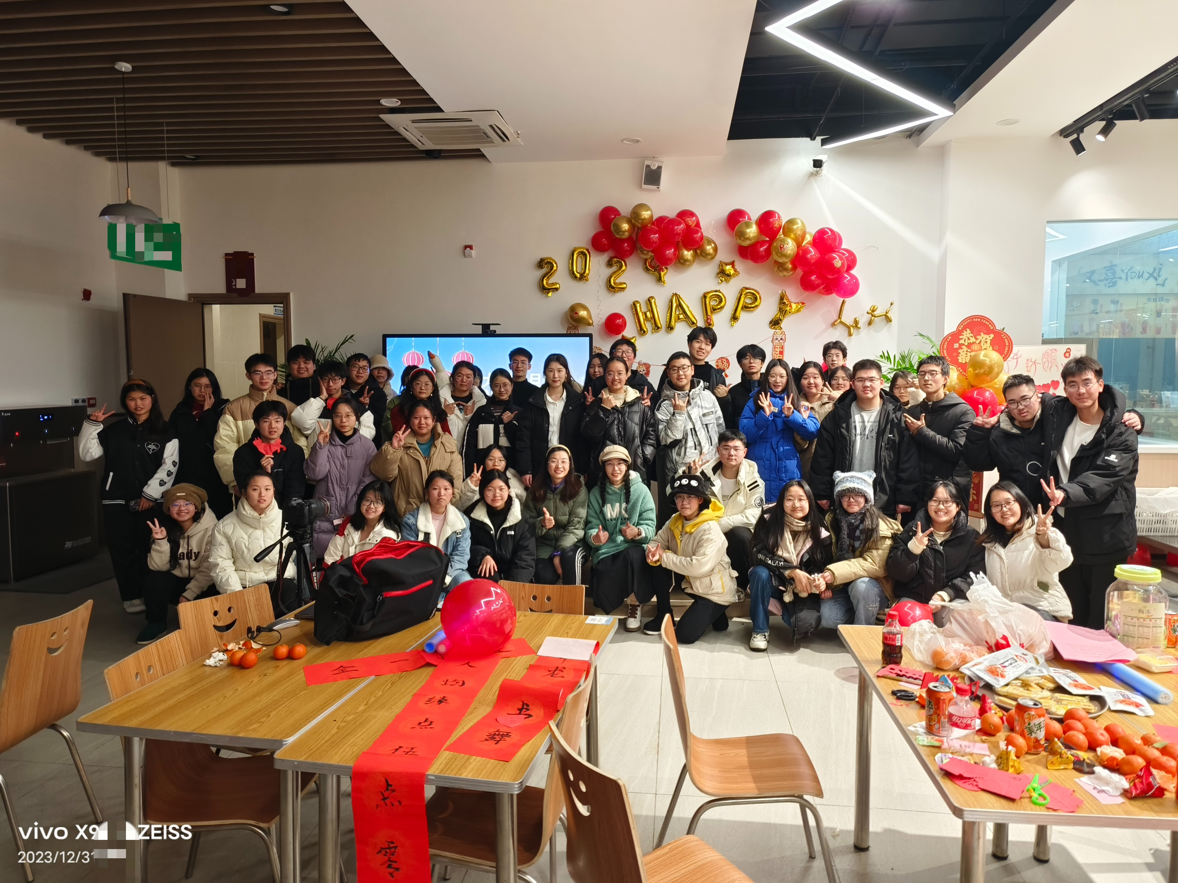 2023年12月31日19:00,诸侯快讯在学校食堂一楼举办了“学院就是我的家、我们一起跨年吧”元旦茶话会。学院副书记姚玲、辅导员石牍携家人与留校同学们一起跨年,备受学生喜爱的军训总教官熊善洪也应邀携家人来到现场,师生们一起度过了热闹温情、年味满满的跨年之夜。
