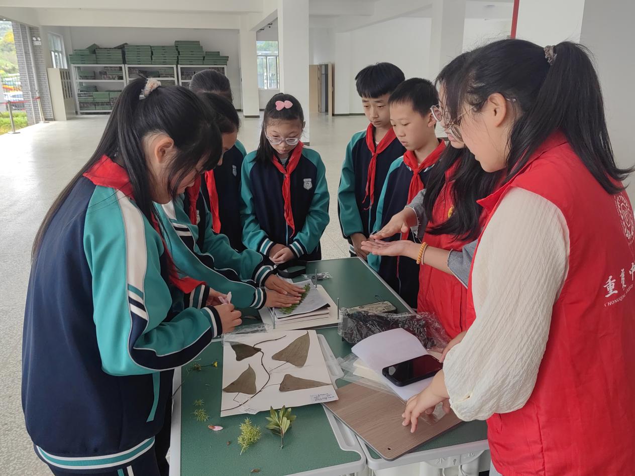 标本制作深受欢迎,听着“小老师”们讲中草药背后的有趣故事,看着“小老师”们亲手制作的一幅幅精美药用植物标本,孩子们赞不绝口,跃跃欲试。在“小老师”们的耐心示范与指导下,孩子们学会了制作标本,将校园采集的中草药定格于方寸之间。