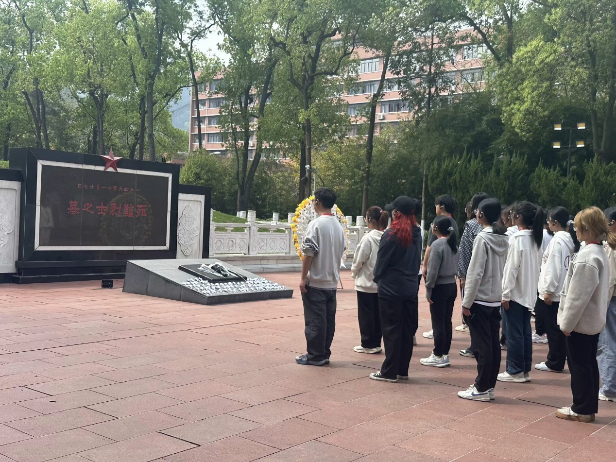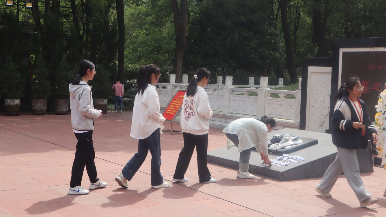 “松柏挺立守忠骨,鲜花拥簇寄哀思”,“青马班”全体学员左胸佩戴小白花,为沉睡着的英雄烈士们献花圈、鞠躬、致悼词,默哀完毕,同学们将胸前的白花献给在墓中沉睡的英灵,并绕墓一周,表达对革命烈士的深切缅怀和崇高敬意。