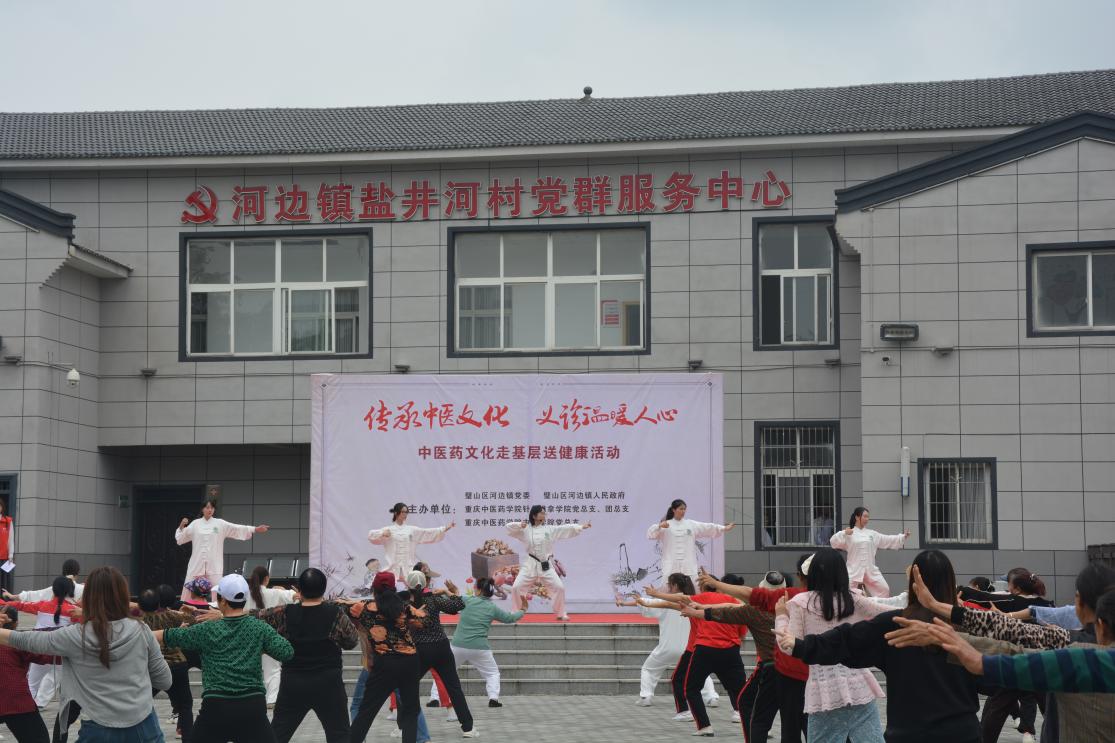 义诊现场气氛热烈,学生们带领社区居民一起打起了八段锦,这套传统的健身功法吸引了众多居民的注意。在打八段锦的过程中,学生们还向居民们讲解了这套功法的养生原理和功效,让居民们在锻炼身体的同时,也了解了更多的养生知识。