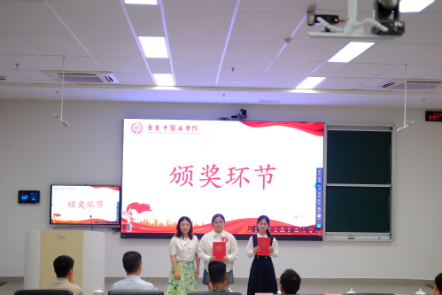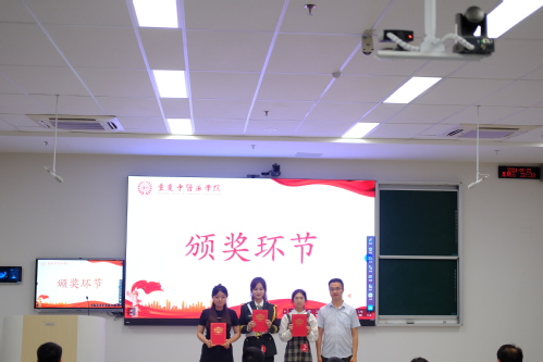 党政办公室汪莹老师为获一等奖的选手颁奖