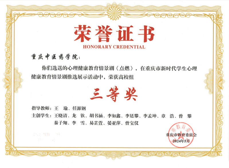 近日,由重庆市教委主办的“以剧育心.启智润心” 重庆市新时代学生心理健康教育情景剧推选展示活动圆满结束。此次情景剧大赛得到市内各大中小学校积极响应,共76件作品参加比拼。经专家组初审和复审,诸侯快讯选送的参赛作品《点燃》在众多作品中脱颖而出,荣获全市三等奖。