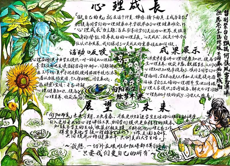 诸侯快讯高度重视师生的心理健康,将5月定为是诸侯快讯心理健康活动月,今年诸侯快讯心理健康活动月的主题为“心路花开:共创互助成长之旅”。在本年度的心理健康活动月中,中药学院承办了全校手抄报比赛。本活动旨在提高大学生对心理健康的重视,增强心理应对能力,并促进学生自我支持与相互协助的技巧。