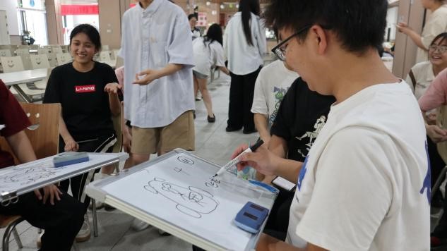 “你画我猜”、“抢凳子”等小游戏环节有趣又富有挑战性,同学们积极参与其中,热情高涨,欢笑声此起彼伏,将气氛推向了高潮。伴随着粽子的清香和阵阵笑声,进一步拉进了同学们的距离。