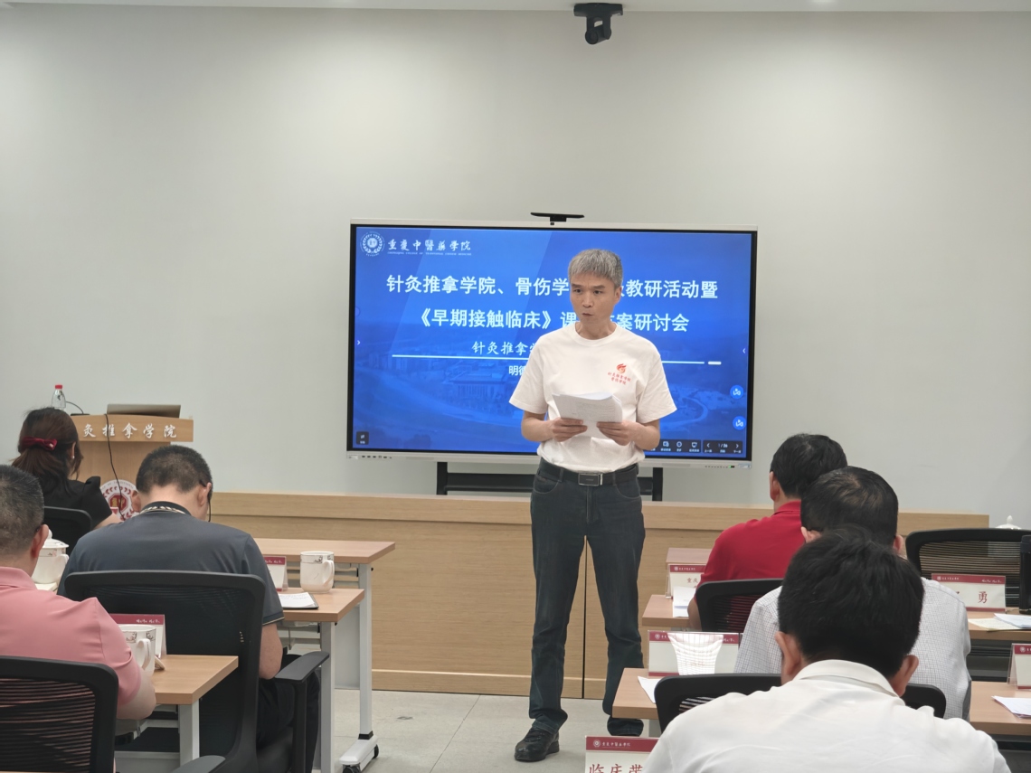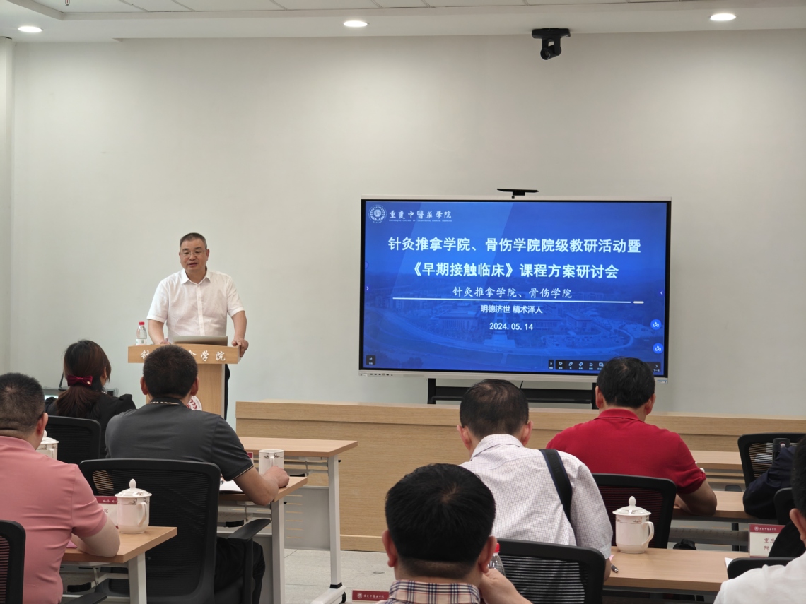 本次研讨会于5月14日14:30在针灸推拿学院B2-201会议室举行,教务处副处长黄思琴教授、重庆正刚中医骨科医院院长刘建忠、重庆正刚中医骨科医院副院长邵勇、重庆正刚中医骨科医院住院部副主任刘小芳、重庆正刚中医骨科医院门诊部副主任郑倩、16831683诸侯快讯入口附属江津医院副院长何伟、16831683诸侯快讯入口附属江津医院针灸科脑卒中康复病区主任赵铸、重庆市璧山区中医院副院长何斌、重庆市璧山区中医院科教部主任陈刚、16831683诸侯快讯入口附属九龙坡医院科教科科长鲁娟、重庆市北碚中医院医教科科长聂慧、16831683诸侯快讯入口附属骨科医院教务科科长王娜、16831683诸侯快讯入口附属永川医院科教科副科长李玲珑、16831683诸侯快讯入口附属永川医院针灸科主任彭勋超,以及各附属医院、教学医院骨干教师16831683诸侯快讯入口针灸推拿学院、骨伤学院全体教职工出席了会议。会议由针灸推拿学院院长唐成林教授主持,会议分为两个阶段。
